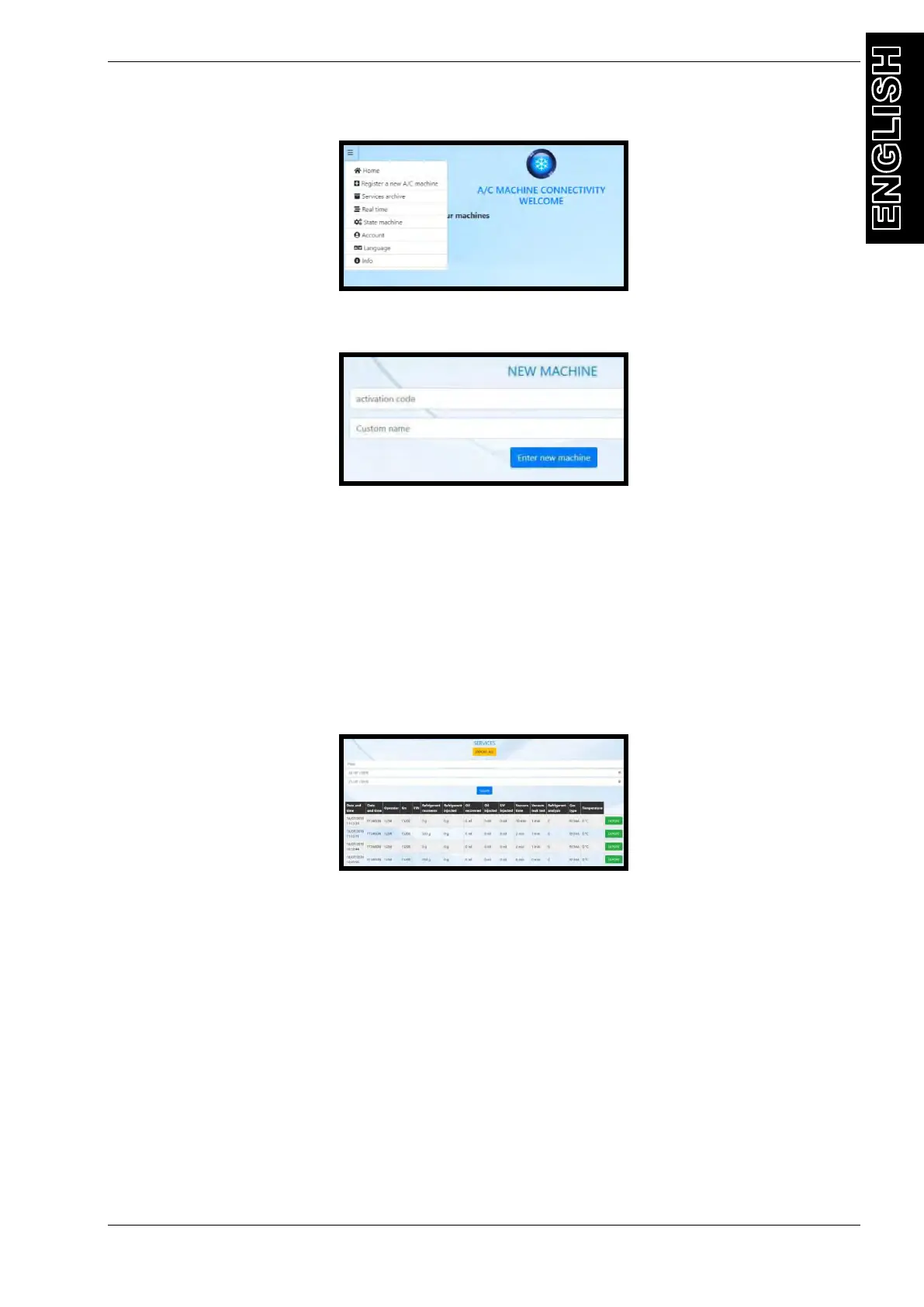 To add a new A/C Station, select from main menu REGISTER A NEW A/C MACHINE.