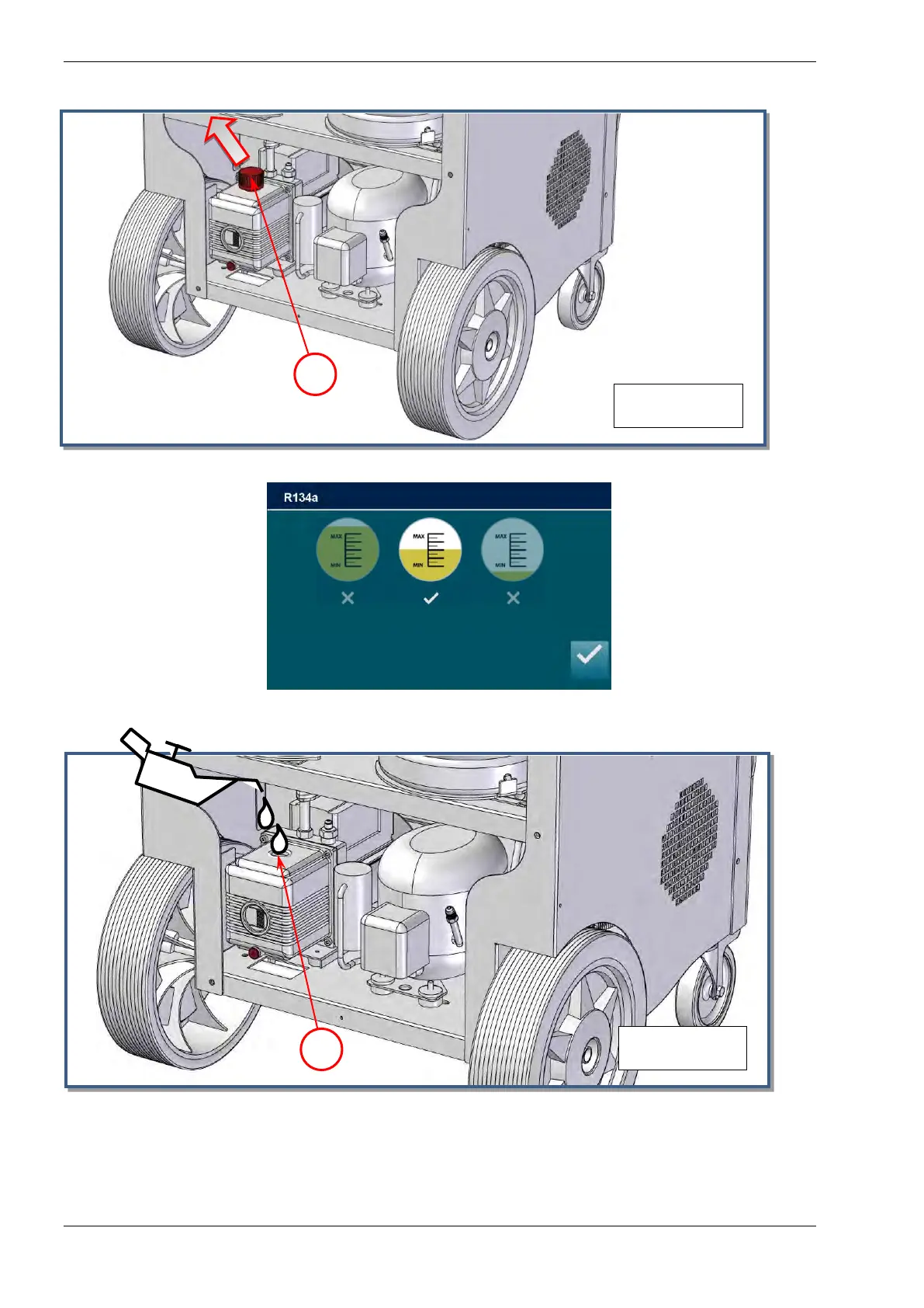 level is about ½ cm above the red mark on the indicator (ref 1, Fig.26).