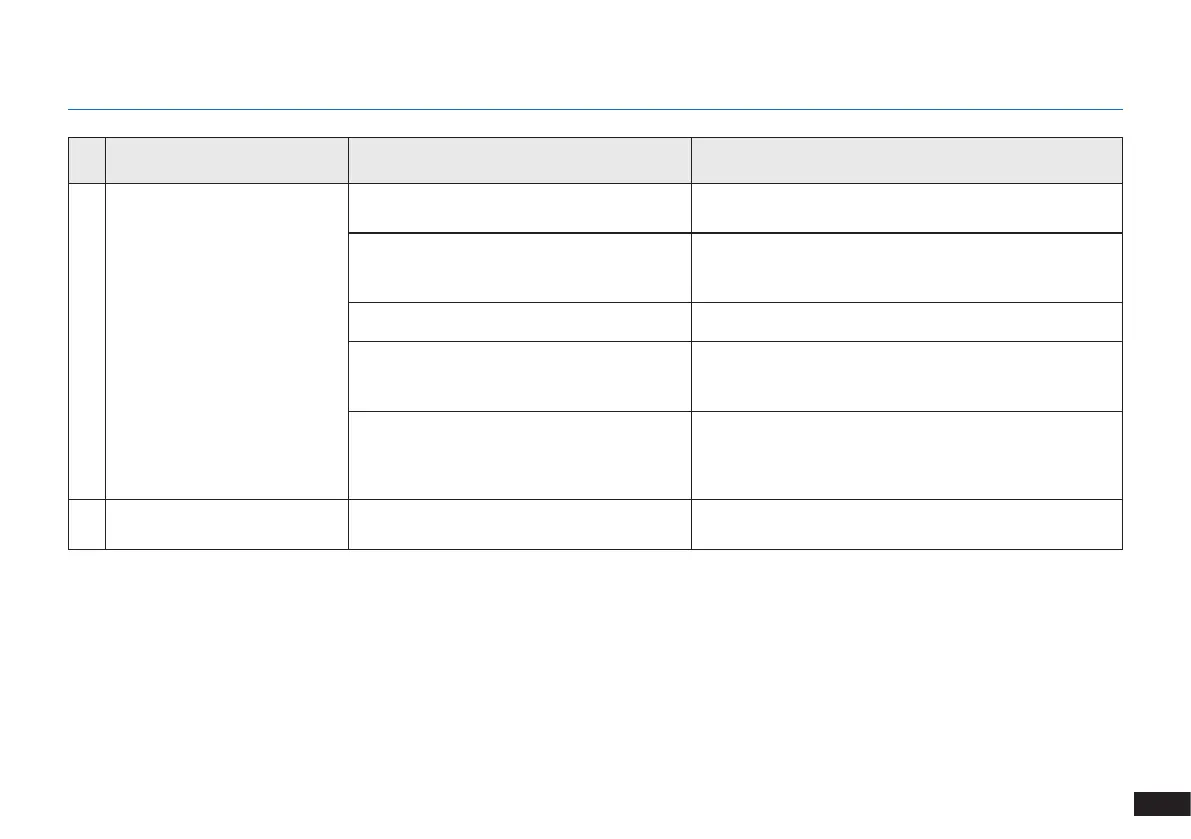 N°. Dysfonctionnement Causes possibles Solutions