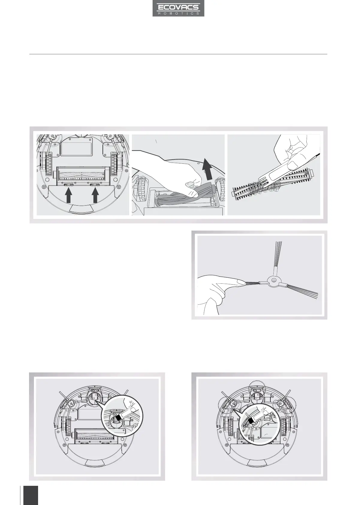Drehen Sie den Roboter um. Drücken Sie die zwei Druckpunkte an der Hauptbürstenabdeckung, um