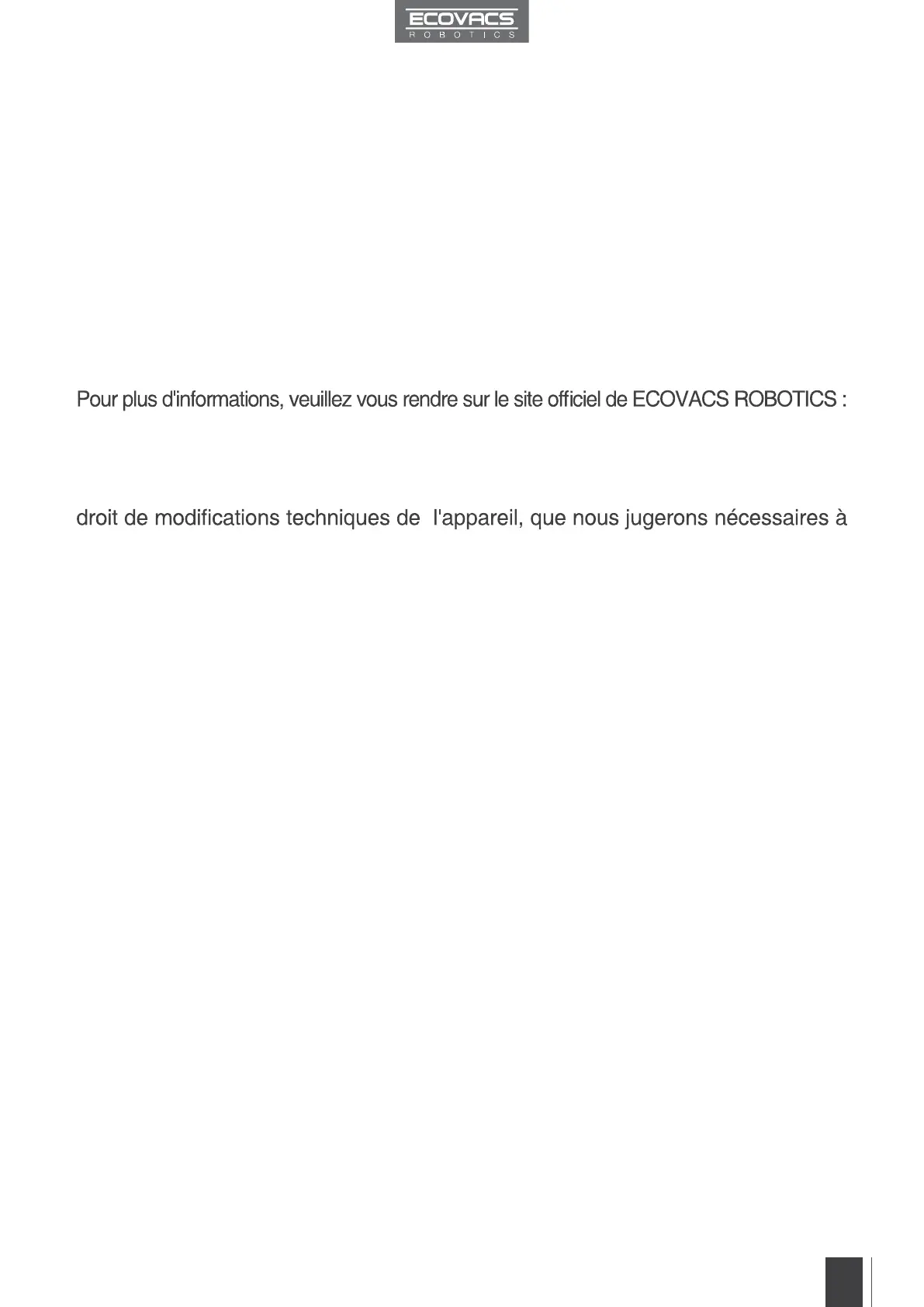 Toutes nos félicitations pour l'achat de votre robot DEEBOT d'ECOVACS ROBOTICS !
