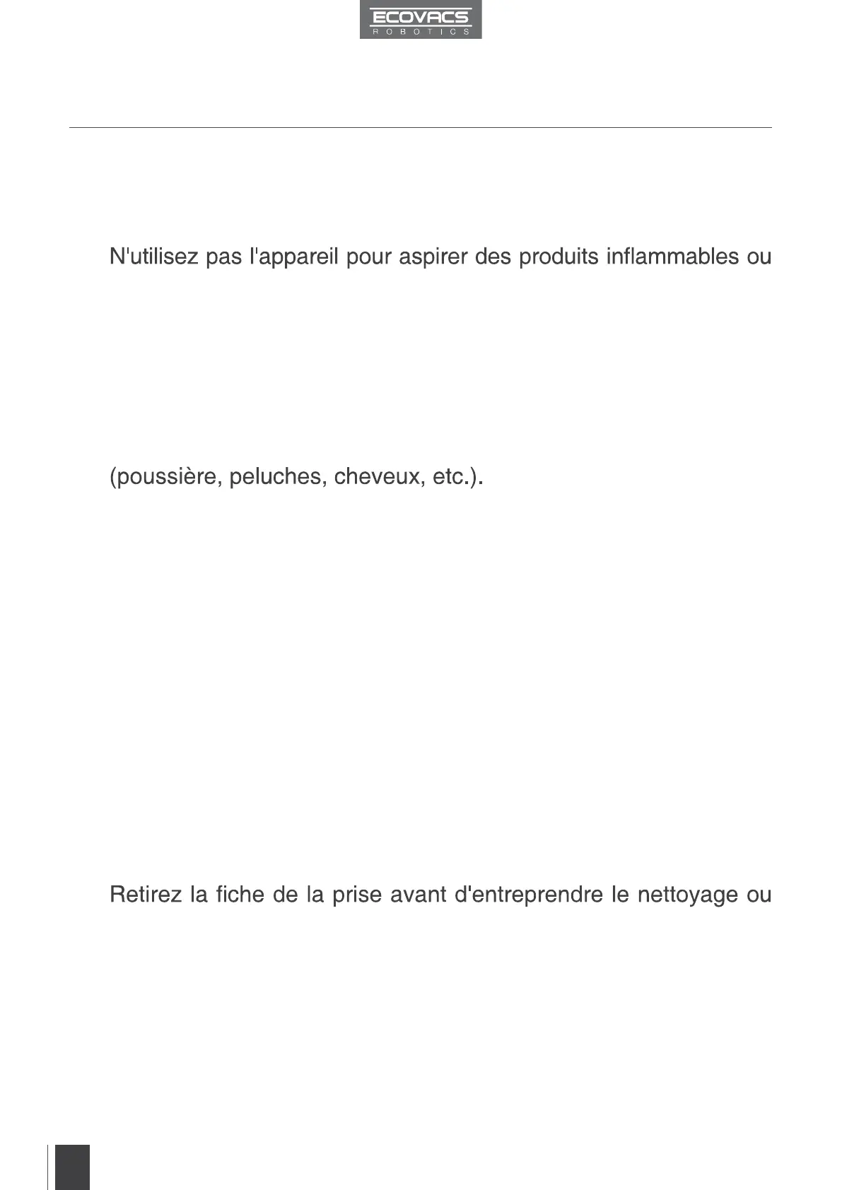 17. N'utilisez pas l'appareil pour aspirer des éléments en feu ou