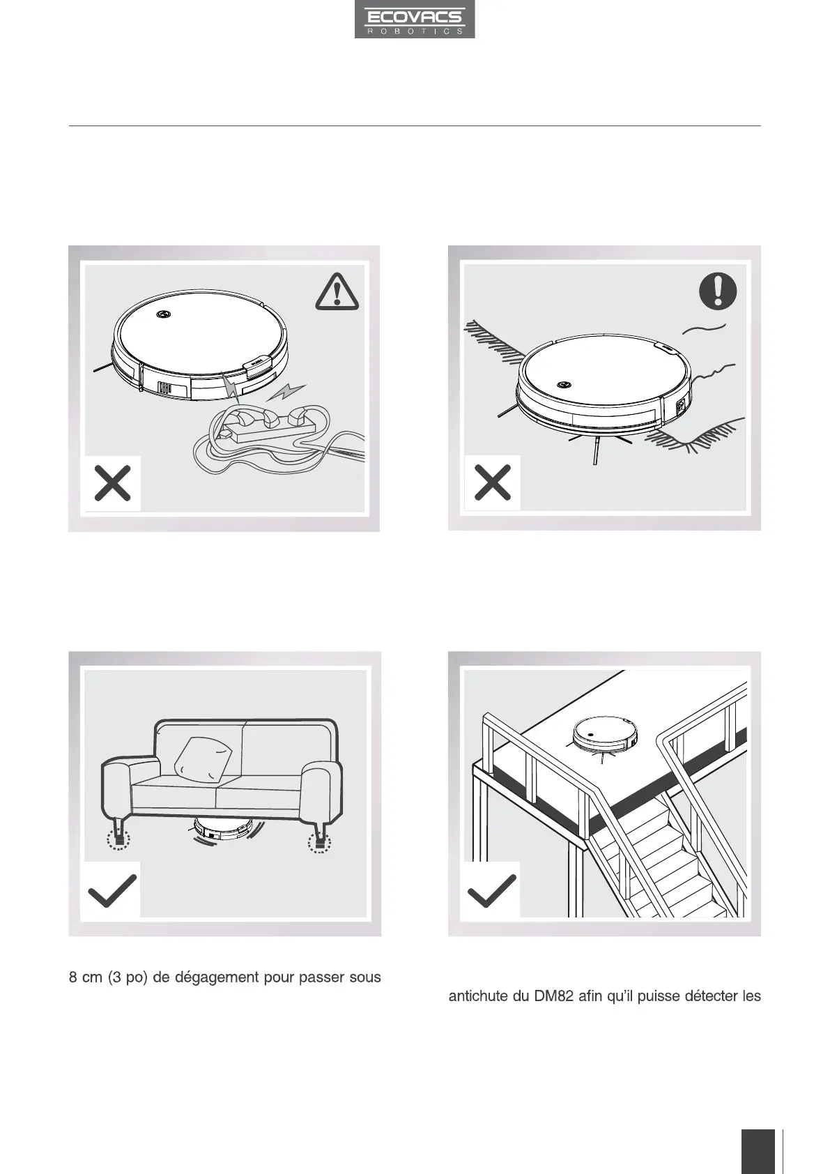 Avant de faire fonctionner DEEBOT, prenez quelques instants pour étudier la zone à nettoyer