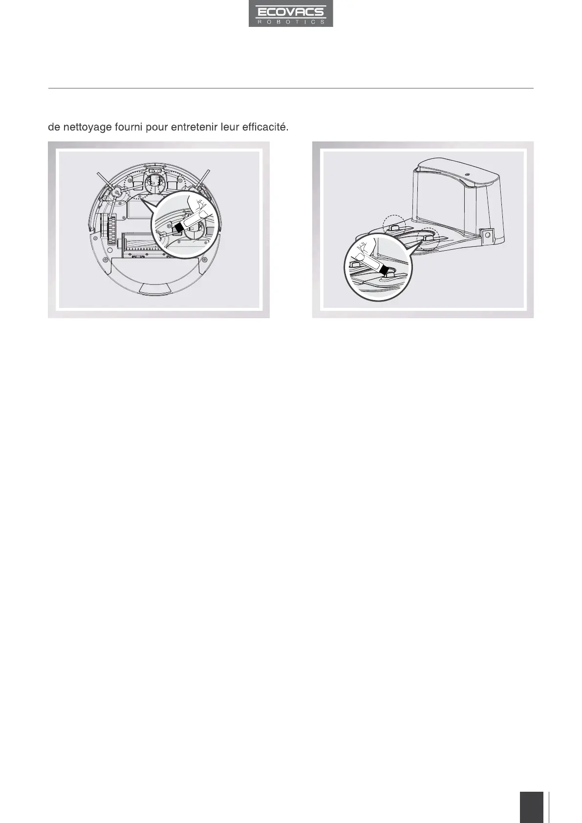 Nettoyez les contacts de charge et les axes de la station de chargement à l’aide de la brosse de l'outil