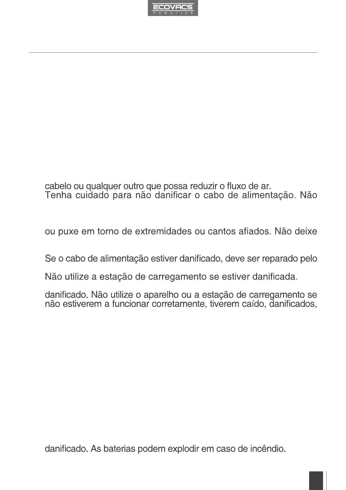 pelo cabo de alimentação, não utilize o cabo de alimentação