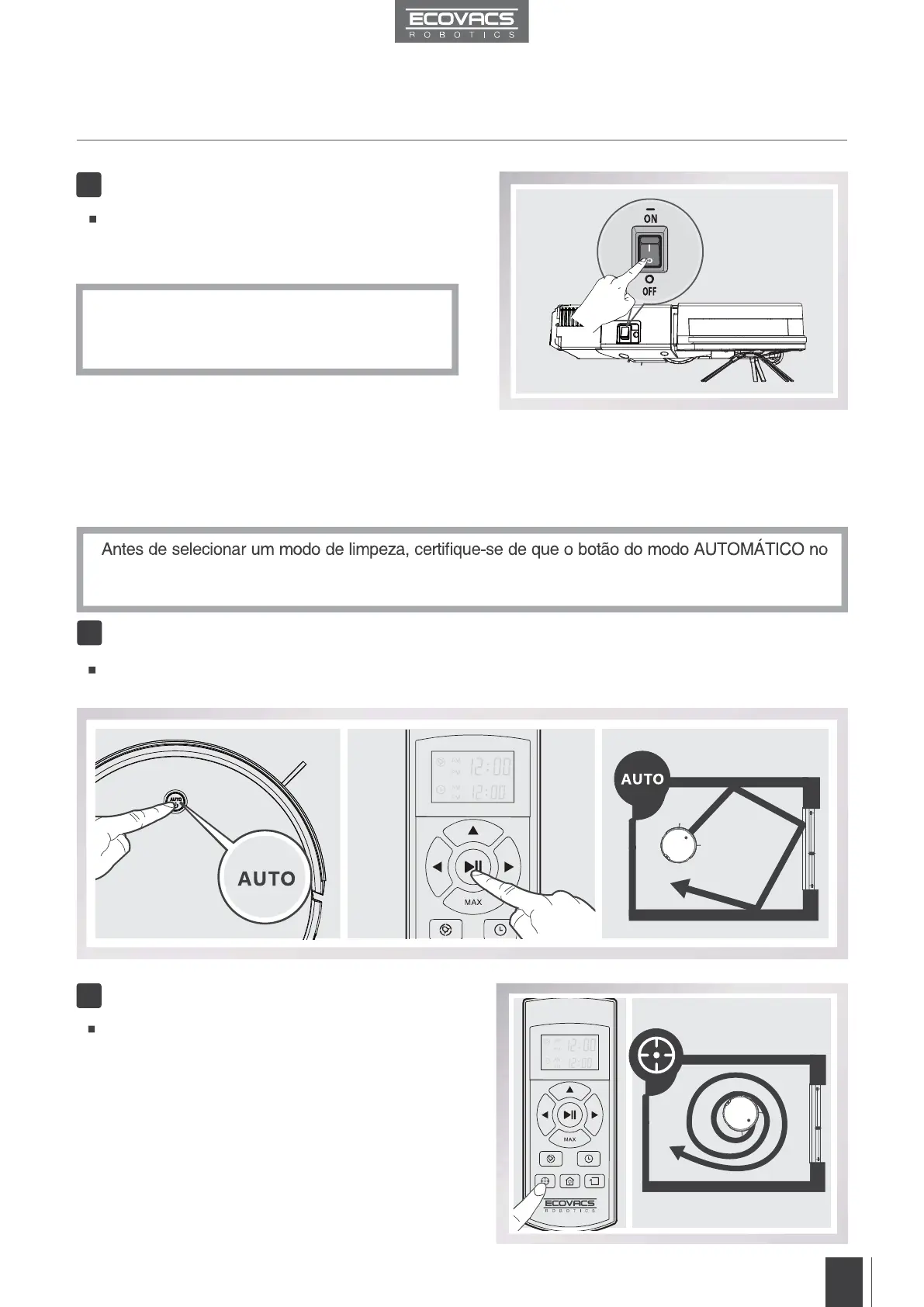 Este é o modo mais utilizado. Em modo de limpeza AUTOMÁTICA, o DM82 limpa em linha reta e