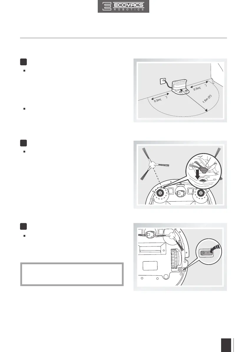 pari a 1,5 m di fronte al dock di ricarica e a 0,5