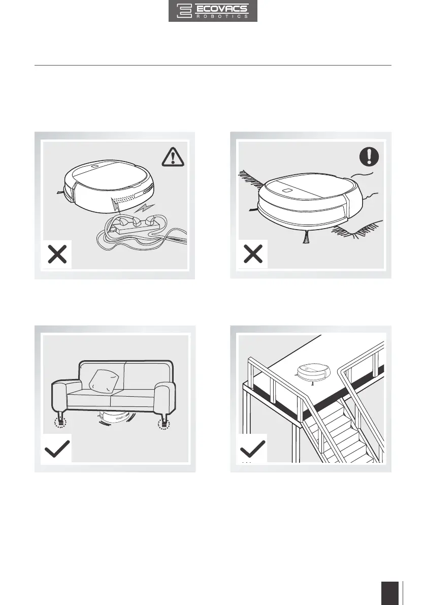 Avant d'utiliser le robot DEEBOT, prendre le temps d'examiner la zone à