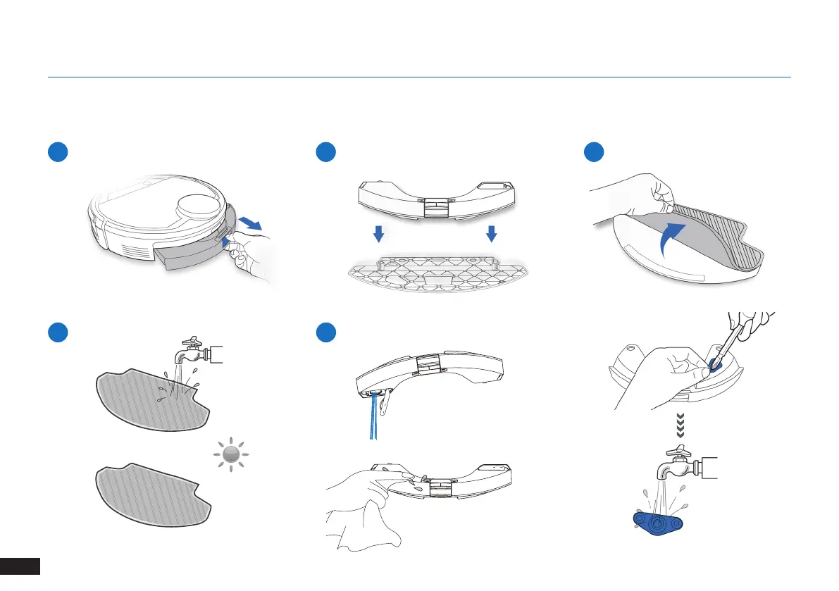 DEEBOT에서 청소 유지보수를 수행하기 전에 로봇 전원을 끄고 도킹 스테이션을 분리합니다.