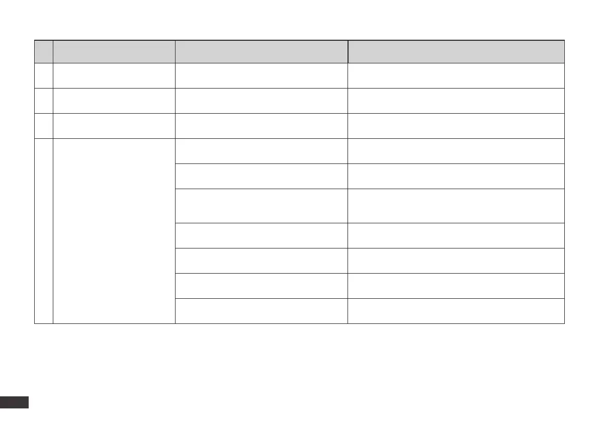 No. Malfunction Possible Causes Solutions