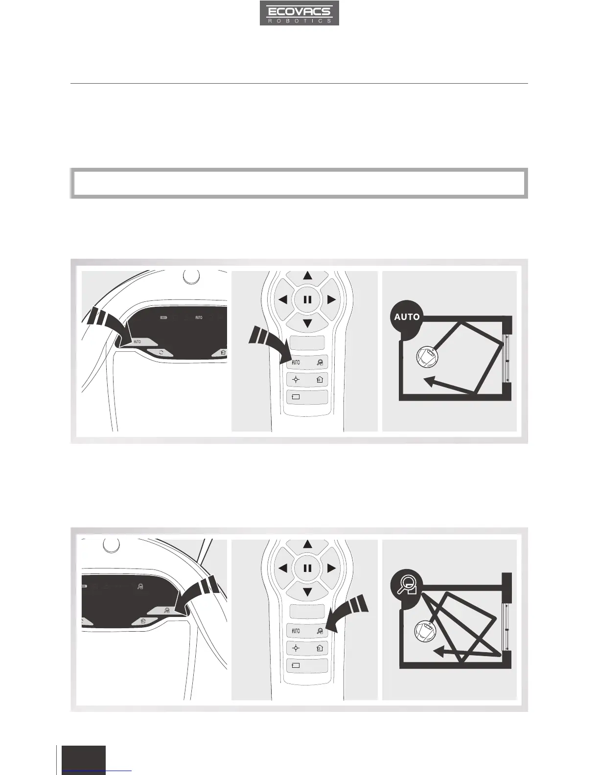 This is the most commonly used mode. In AUTO Cleaning Mode, DEEBOT 6 cleans in a straight line
