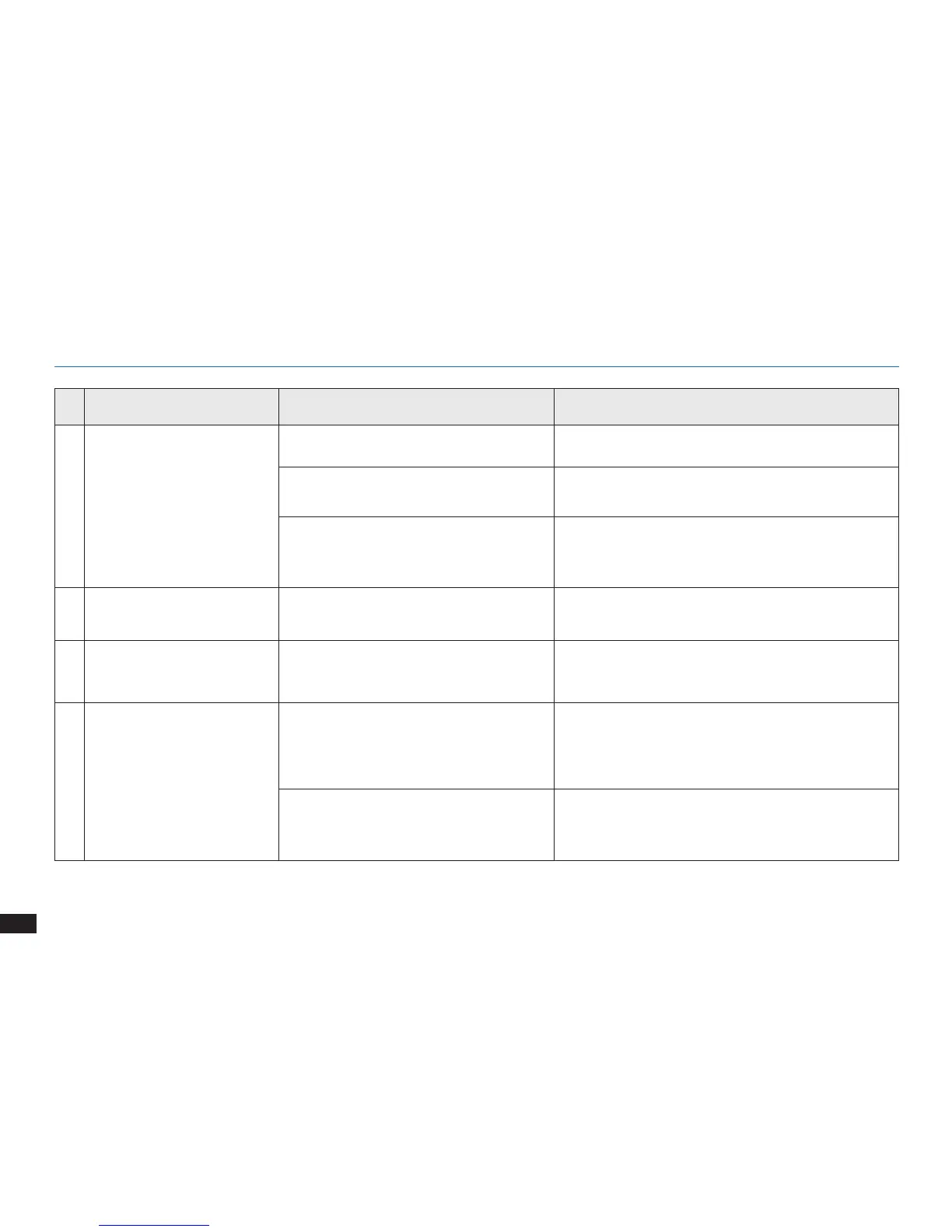 No. Malfunction Possible Causes Solutions