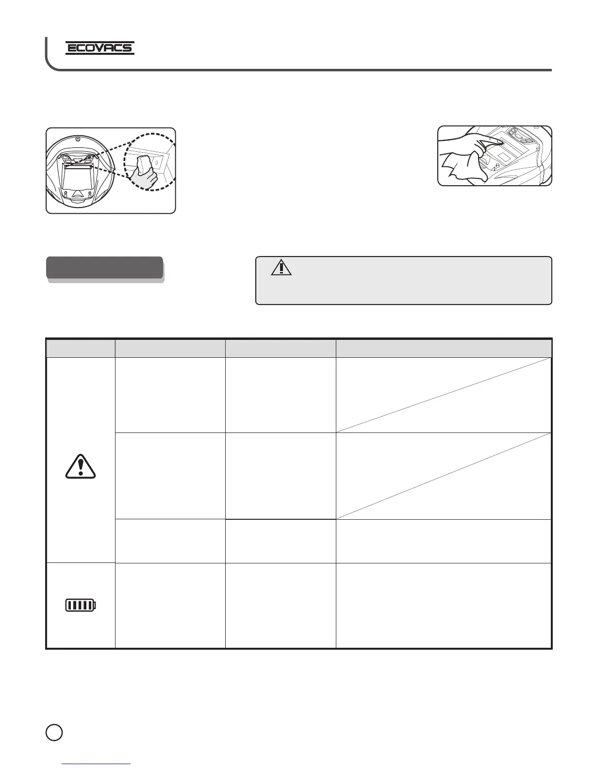The robot will stop working and be alarm and tip sound at the