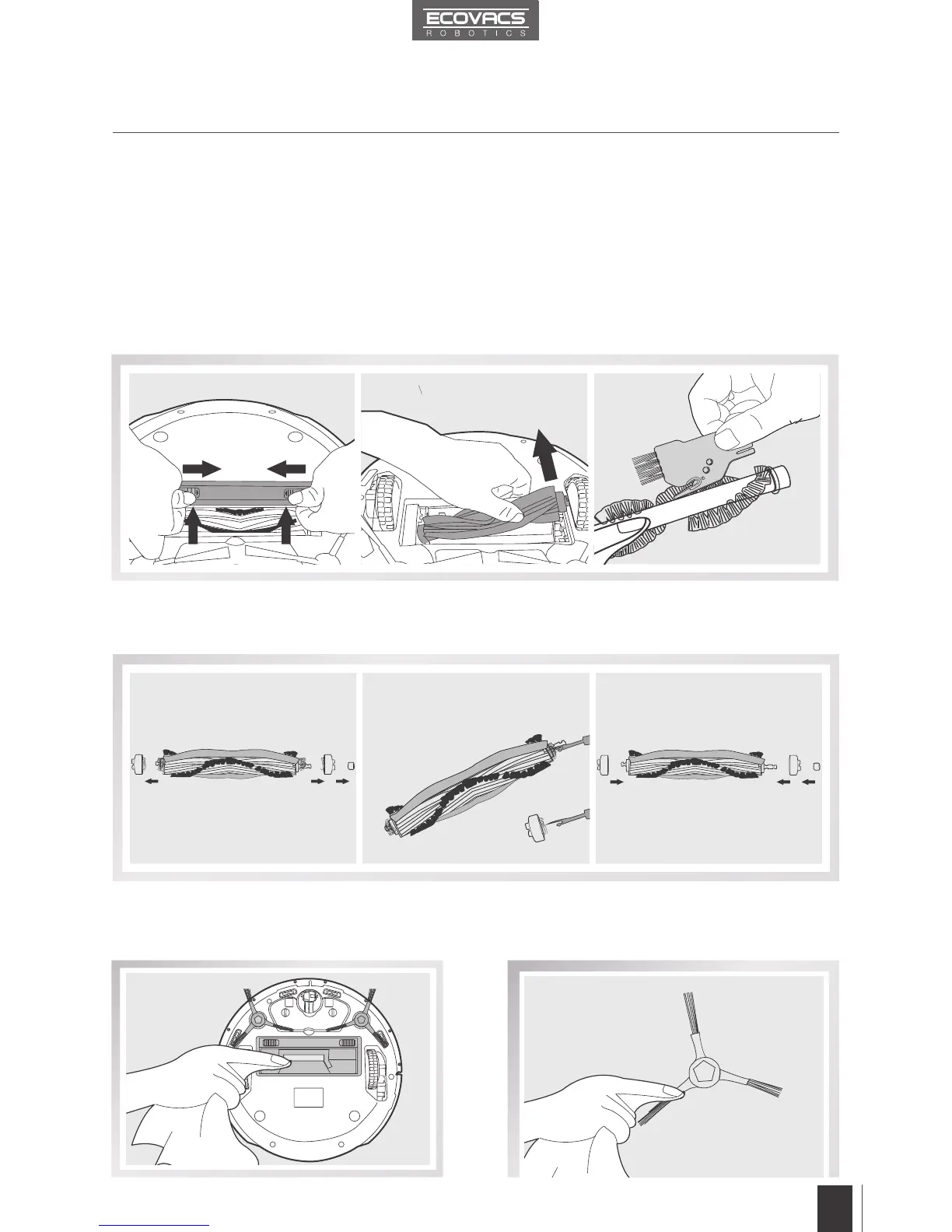 Retournez le robot. Poussez les deux boutons sur l'option de brosse principale vers le centre du robot.