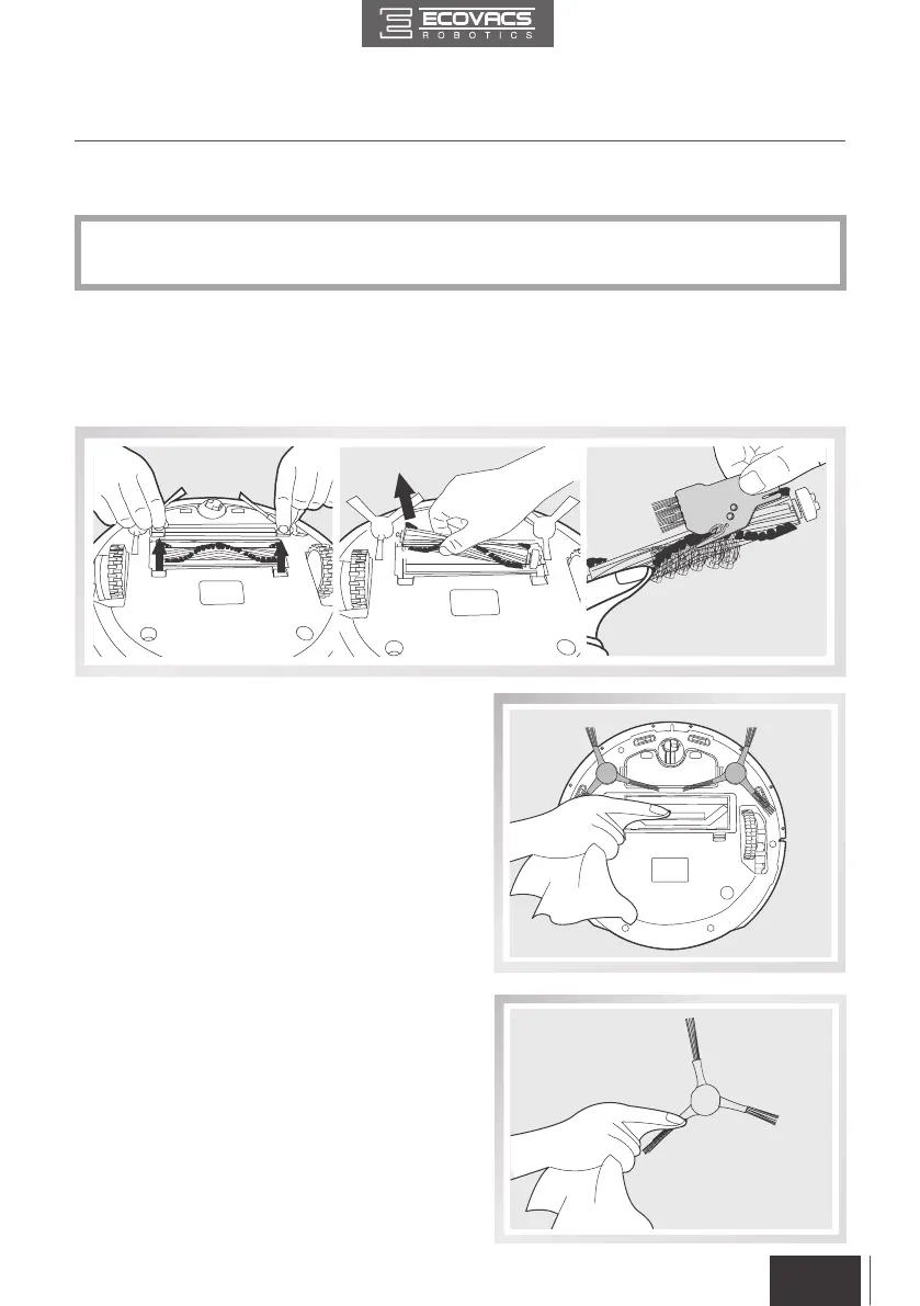 Ponga el robot al revés. Presione ambos botones de la cubierta del cepillo principal y retírela.