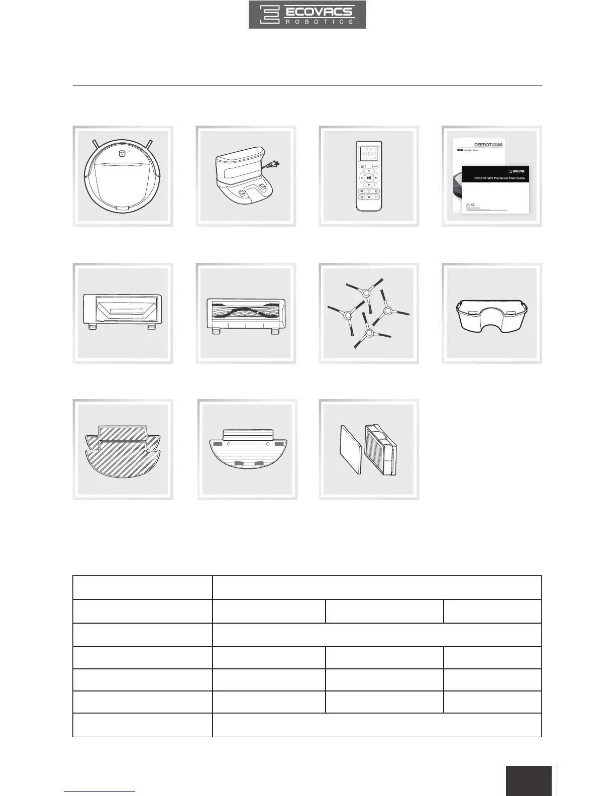 ECOVACS DEEBOT M81Pro - 2 패키지 내용물 및 기술 사양; 패키지 내용물; 사양