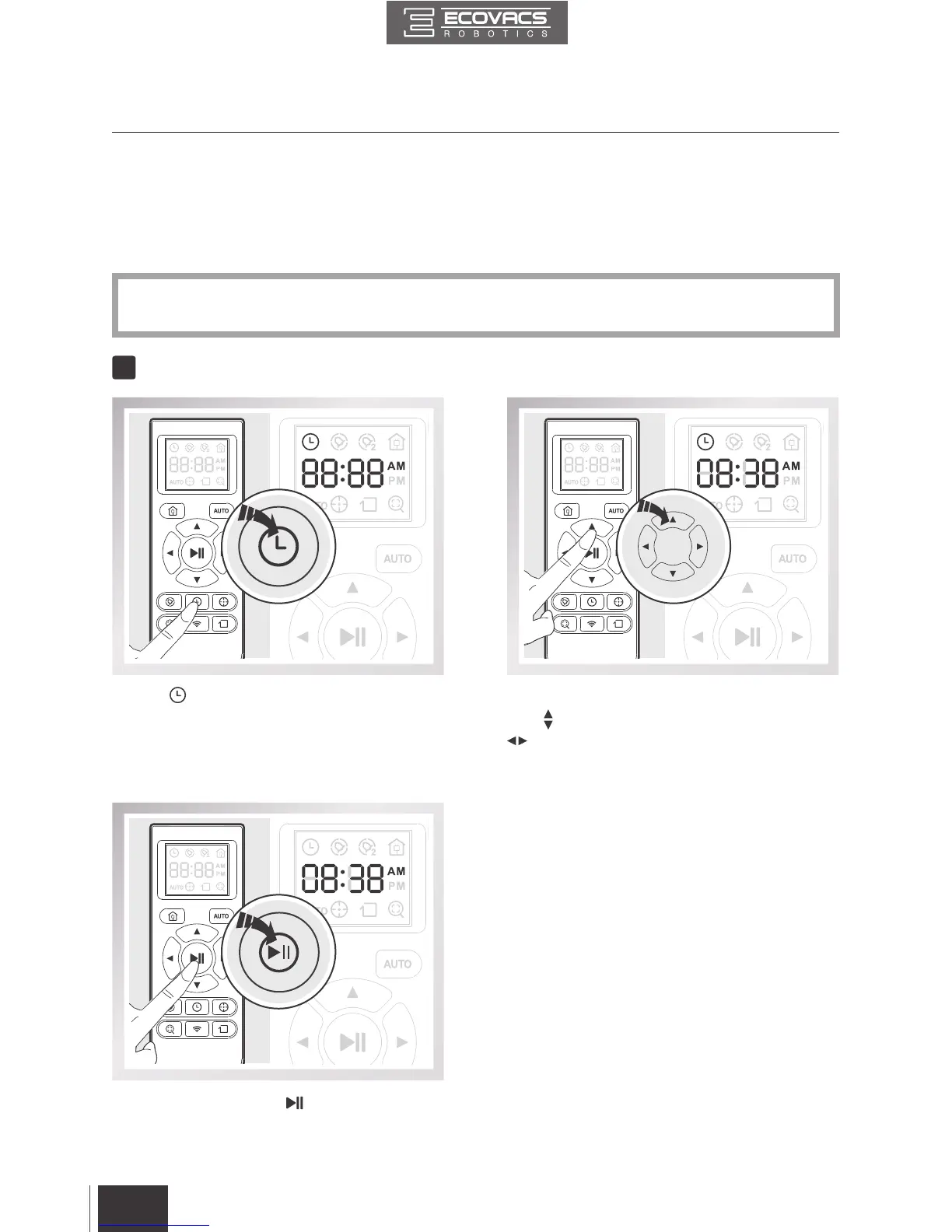 DEEBOT 에는 시간 예약 기능이 있습니다 . 집에 아무도 없을 때도 리모컨을 사용하여 하루에 한