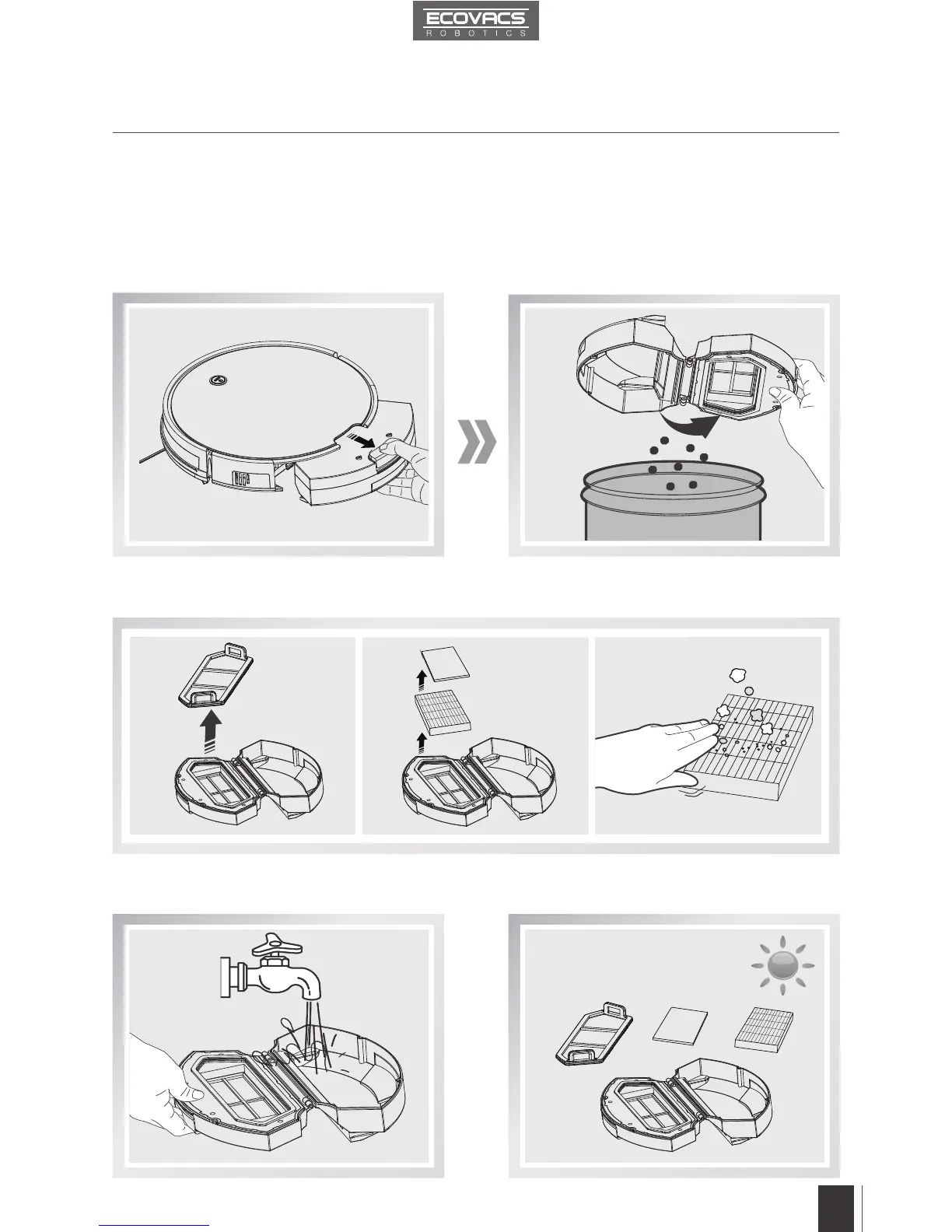 Rinse the Dust Bin, Filter Net and Sponge Filter