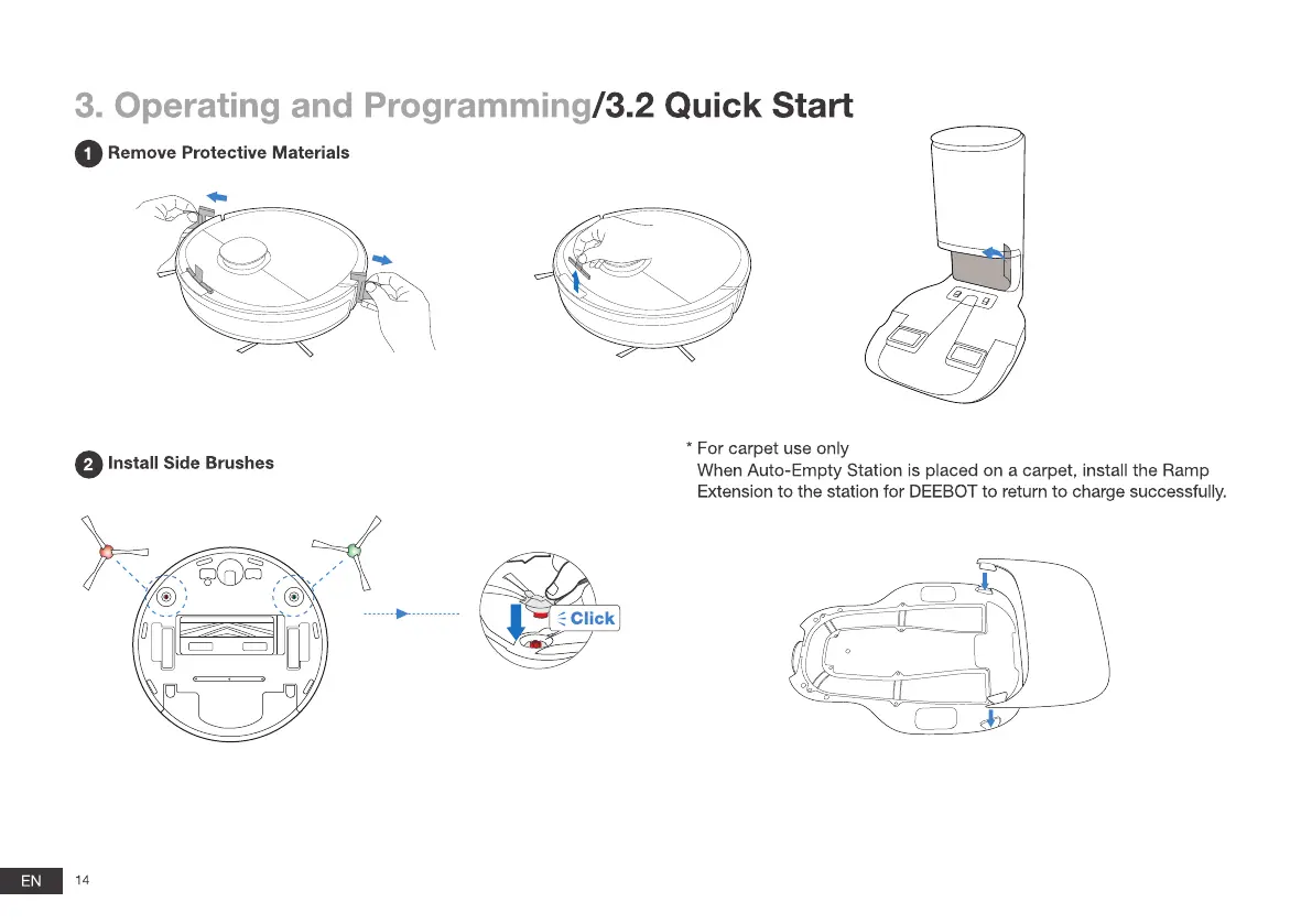 When Auto-Empty Station is placed on a carpet, install the Ramp