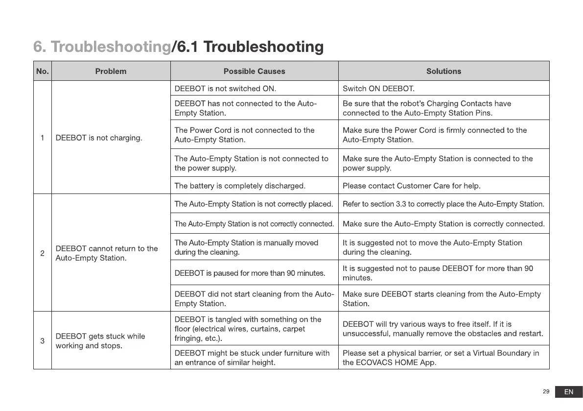 DEEBOT cannot return to the