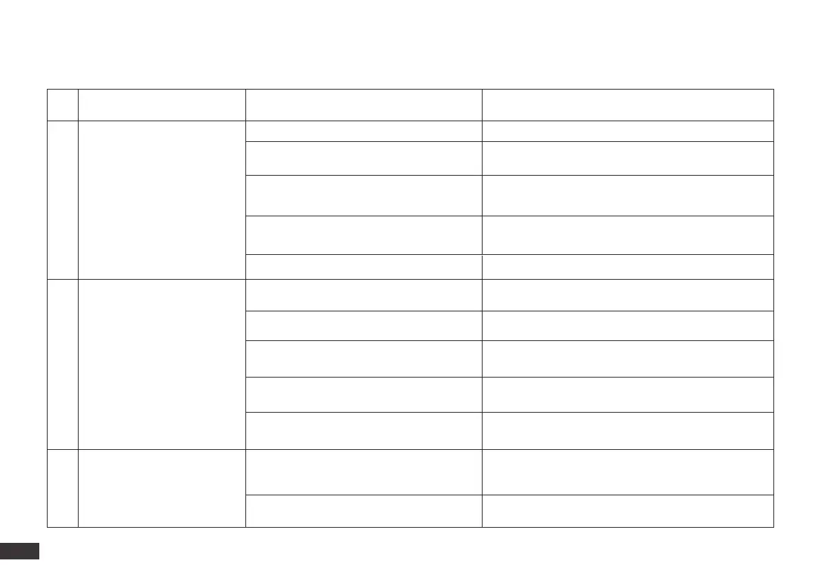 No. Malfunction Possible Causes Solutions