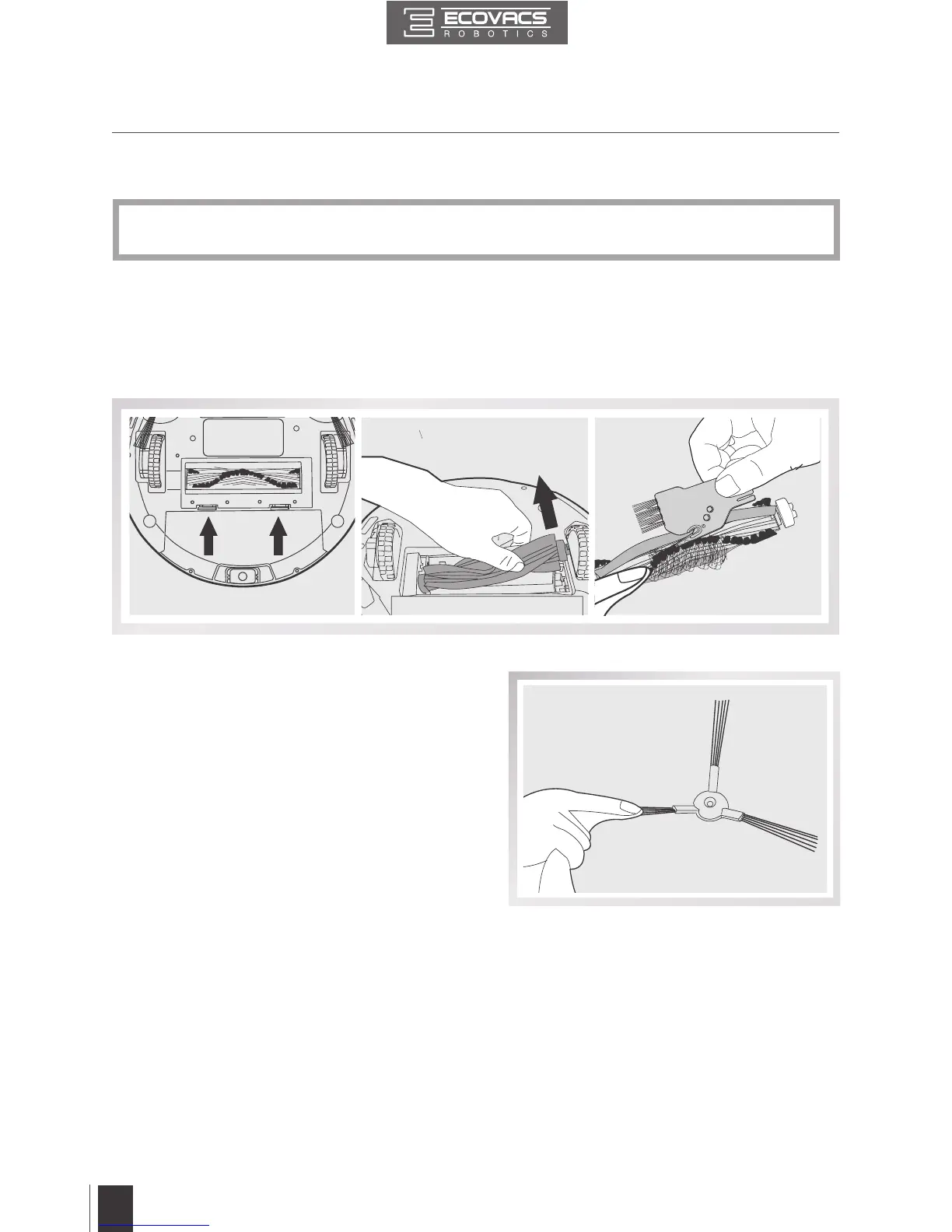 Turn the robot over� Push both buttons on the Main Brush Cover and remove it�