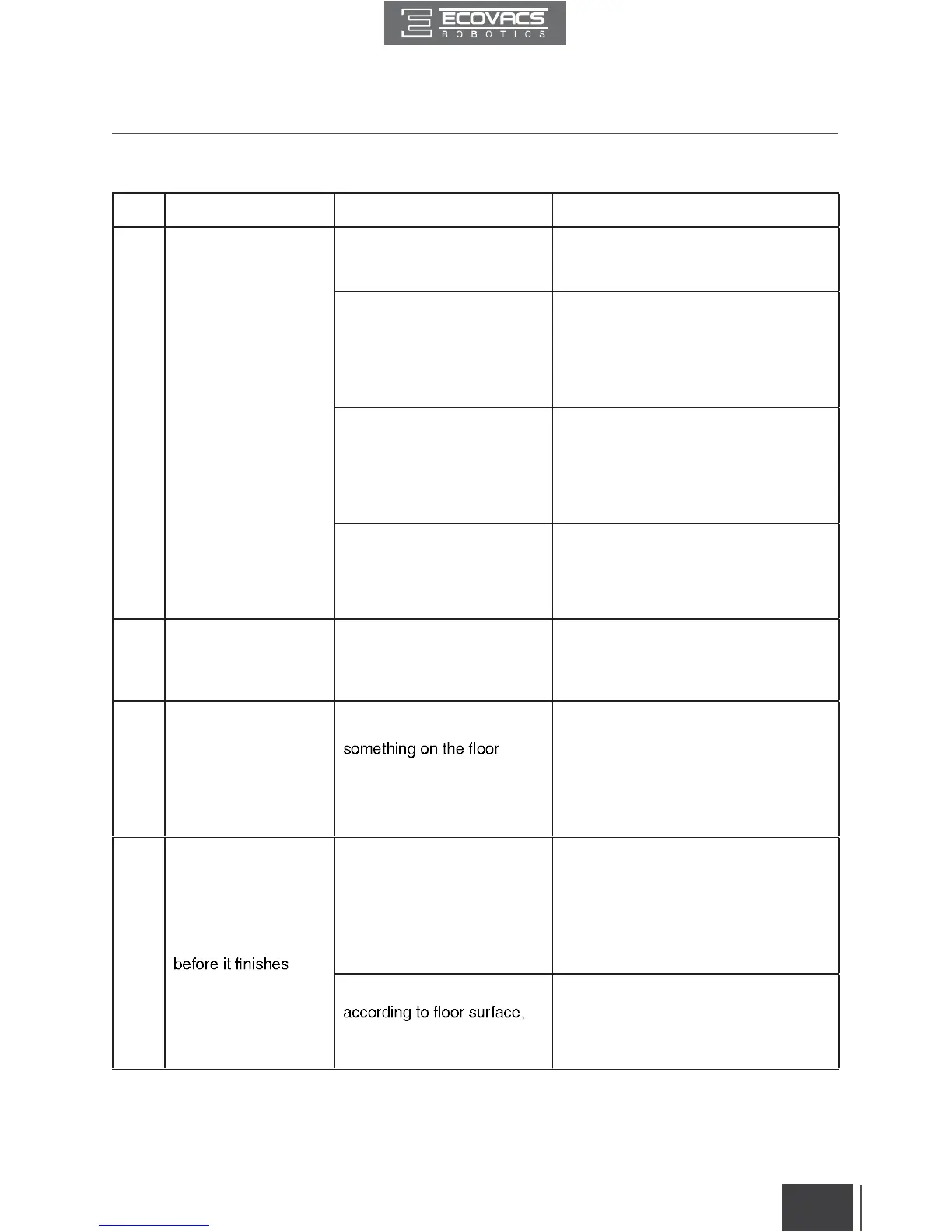 Please use this chart to troubleshoot common problems using DEEBOT.