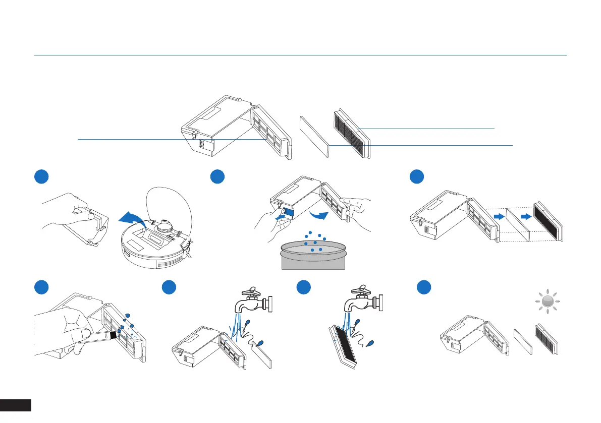 3. Asegúrese de secar el filtro al aire libre durante al menos 24 horas después del lavado.