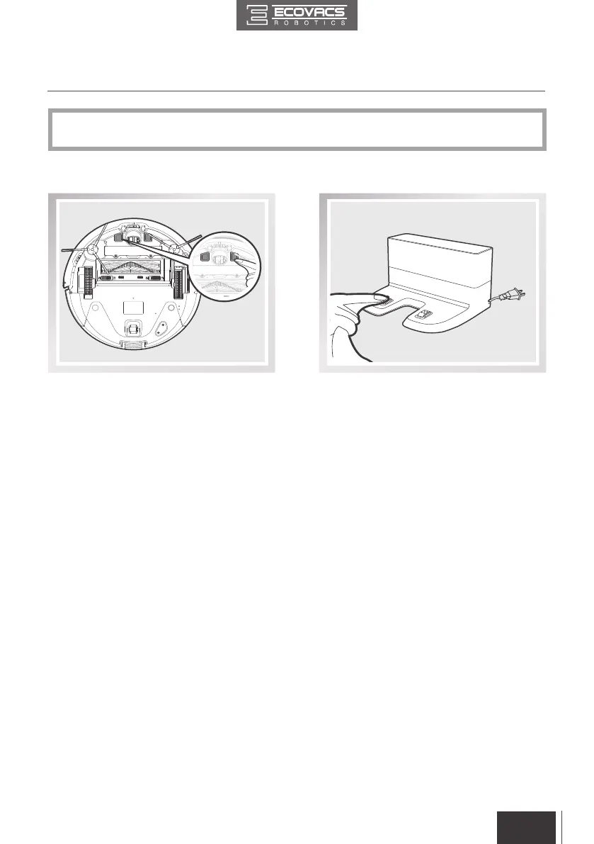 Antes de limpiar los contactos de carga y las clavijas de la estación base del robot, APAGUE