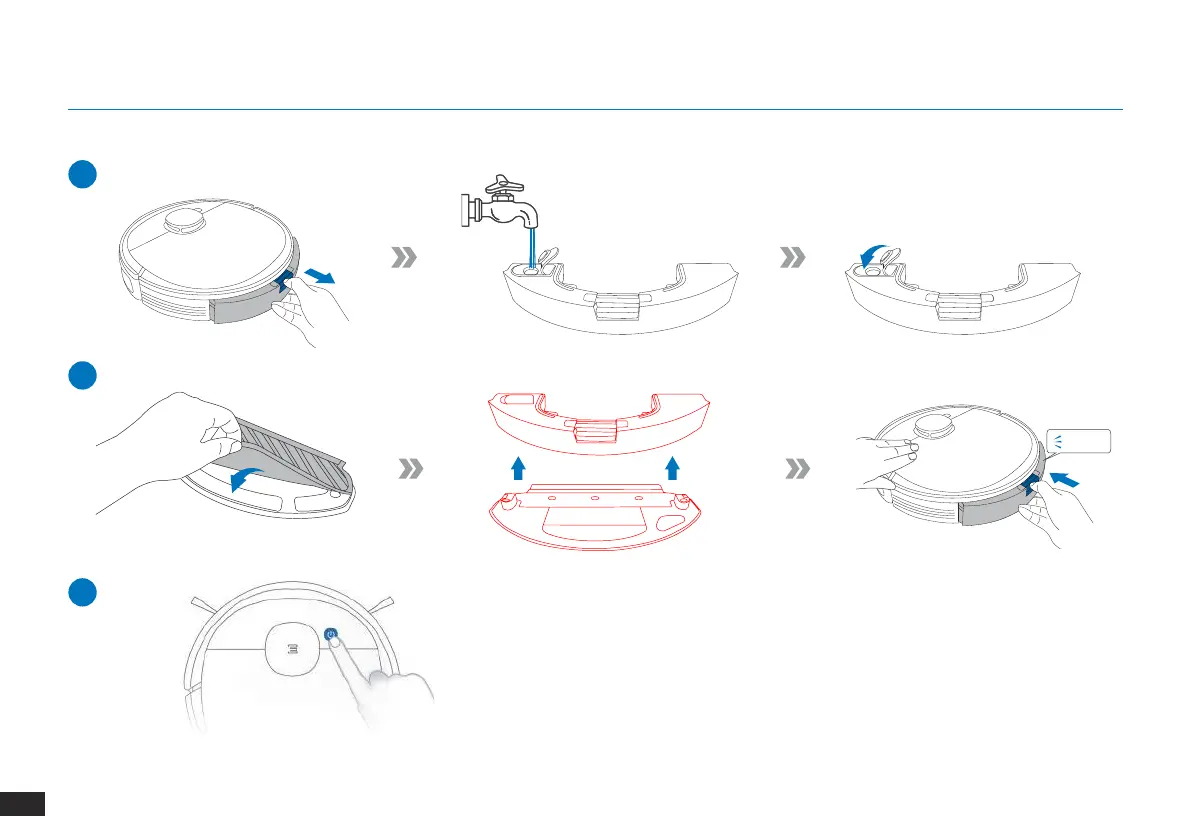 Примечание. Чтобы добавить воду в резервуар во время выполнения уборки,