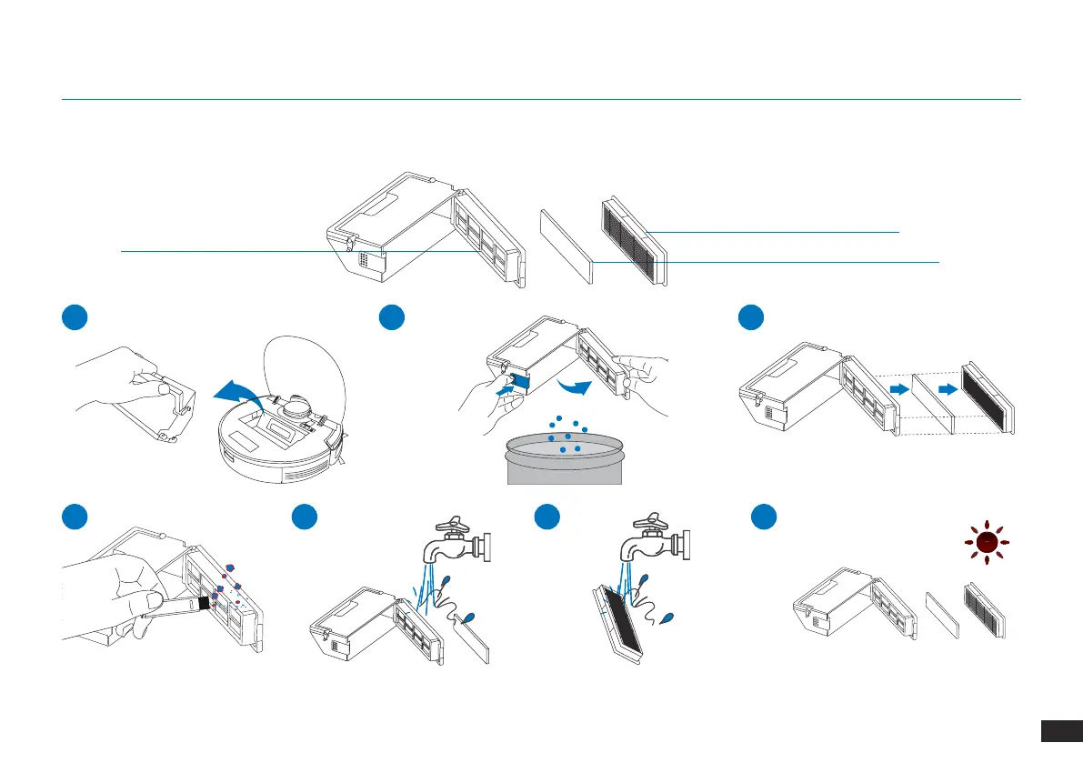 3. Be sure to dry out the filter for at least 24 hours after washing.