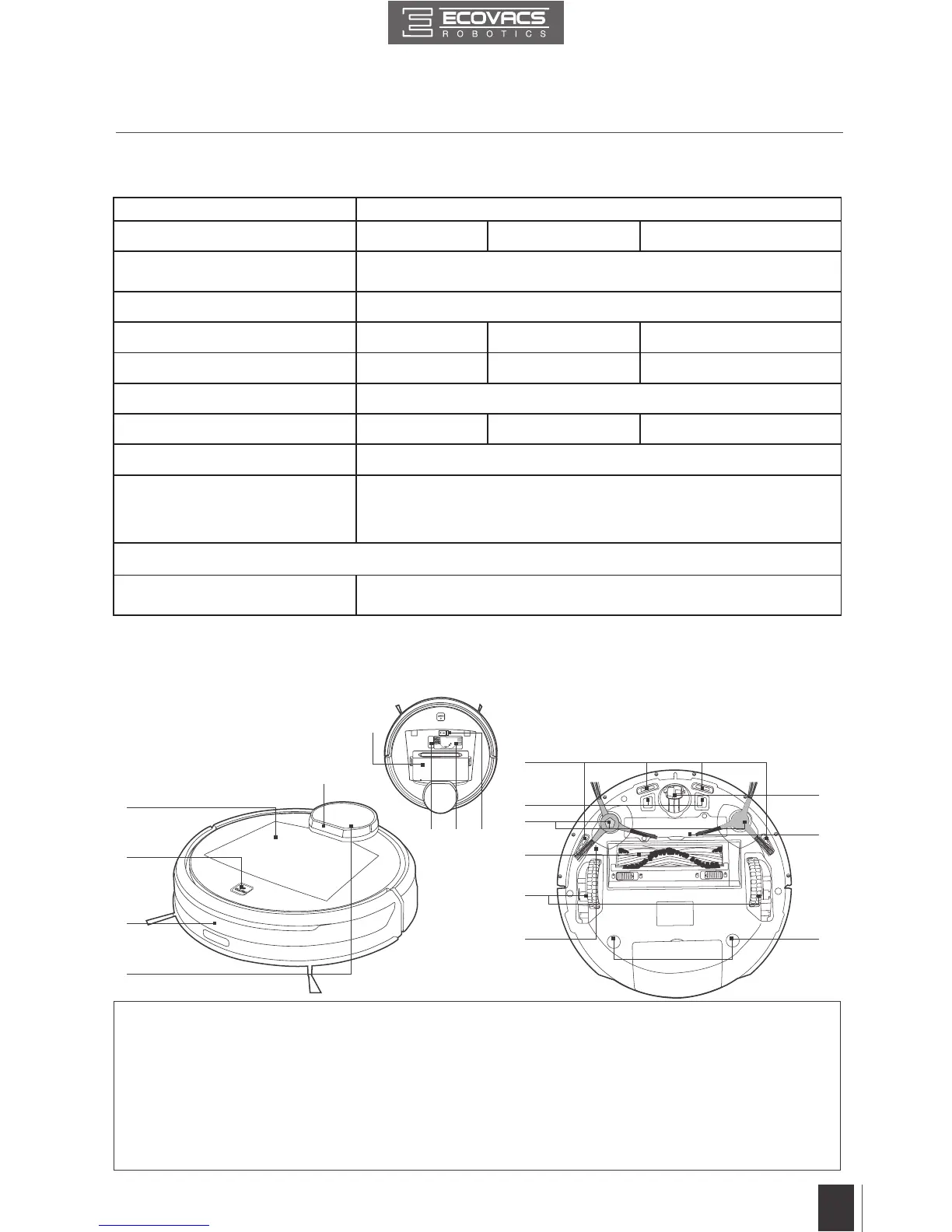 ECOVACS DEEBOT R98 - 사양; 제품 도면