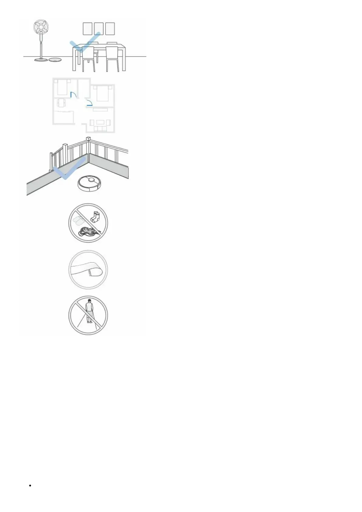 Put away objects including cables, clothes, and slippers, etc. on the floor to improve the cleaning efficiency.