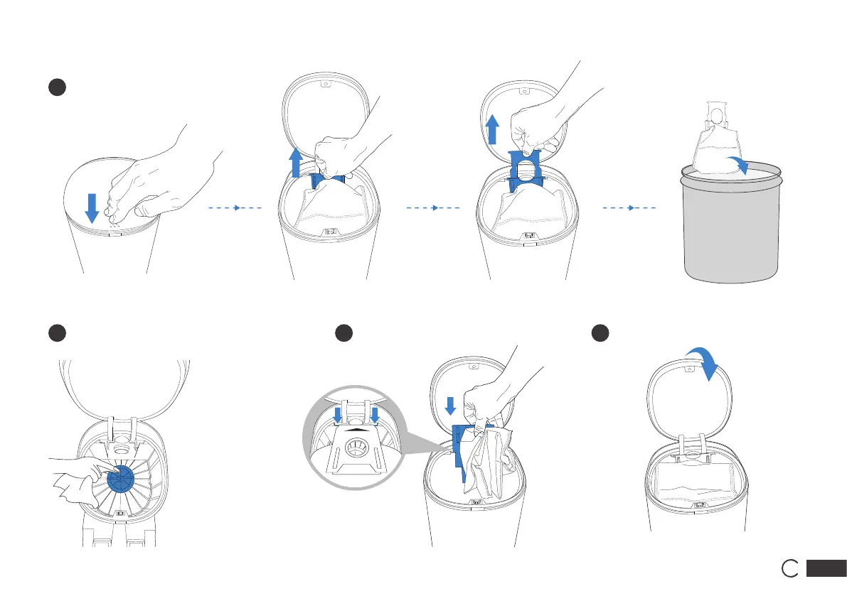 Reinig het deksel van de blazer Plaats de stofzak Sluit de stofcontainerklep