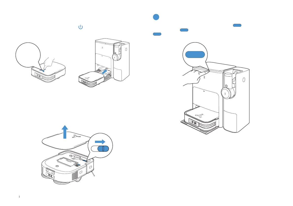 När DEEBOT är i stationen trycker du kort på för att starta/pausa