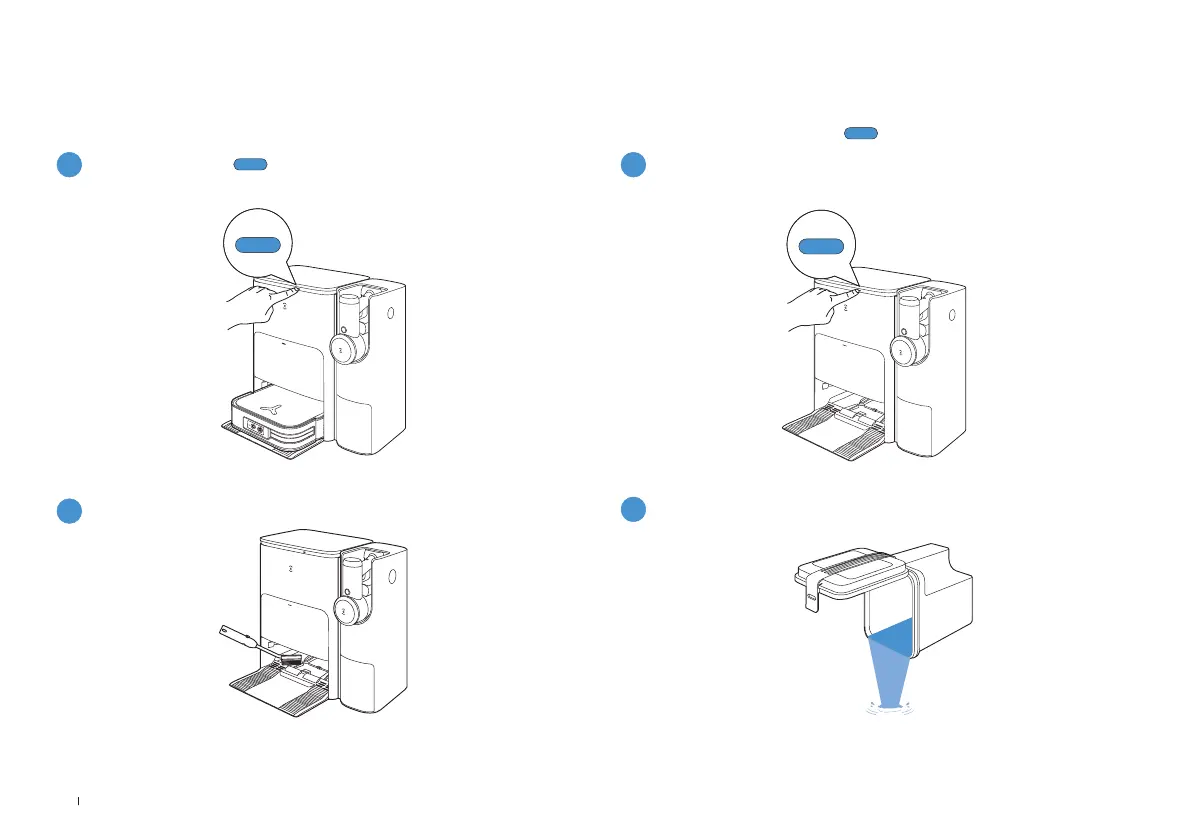 • Om det finns kvar smutsigt vatten i rengöringsvasken dränerar stationen först vattnet efter en lång tryckning� Tryck länge på för att starta självrengöring�