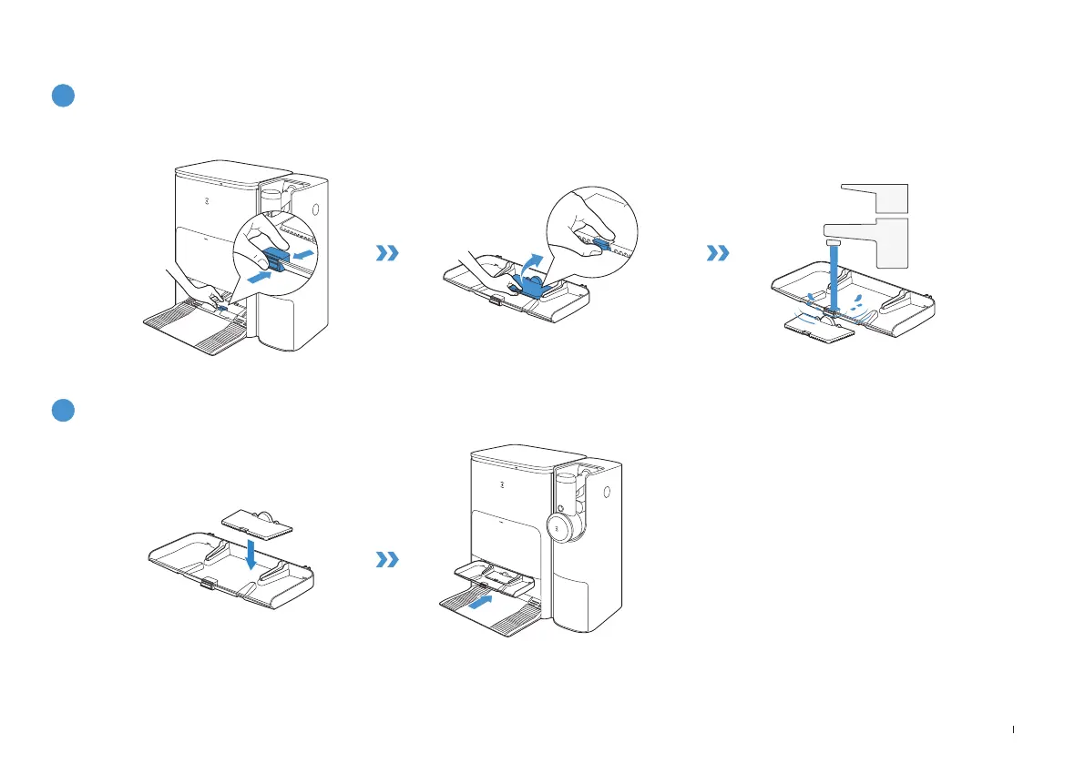 Ta den löstagbara brickan och basfiltret och tvätta dem