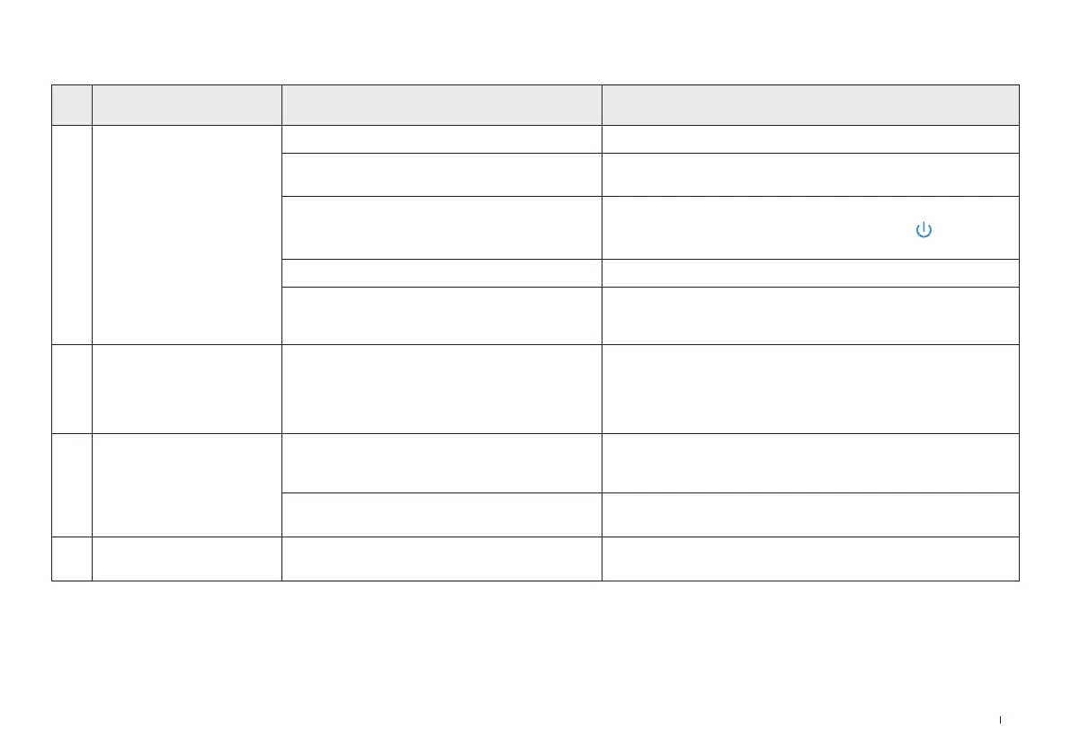 No. Malfunction Possible Causes Solutions