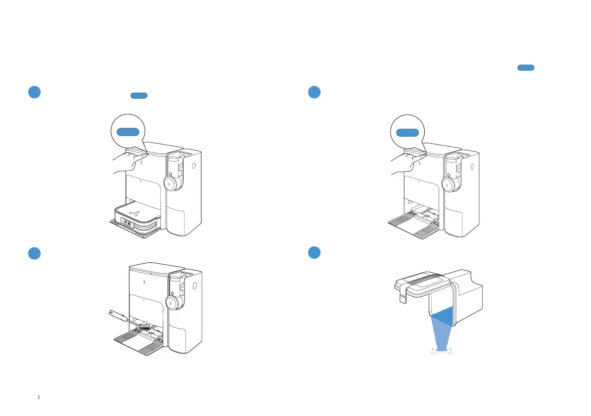 • Wenn sich Schmutzwasser in der Reinigungswanne befindet, wird die Station das Wasser bei längerem Drücken zunächst ablassen� Bitte drücke länger auf ,