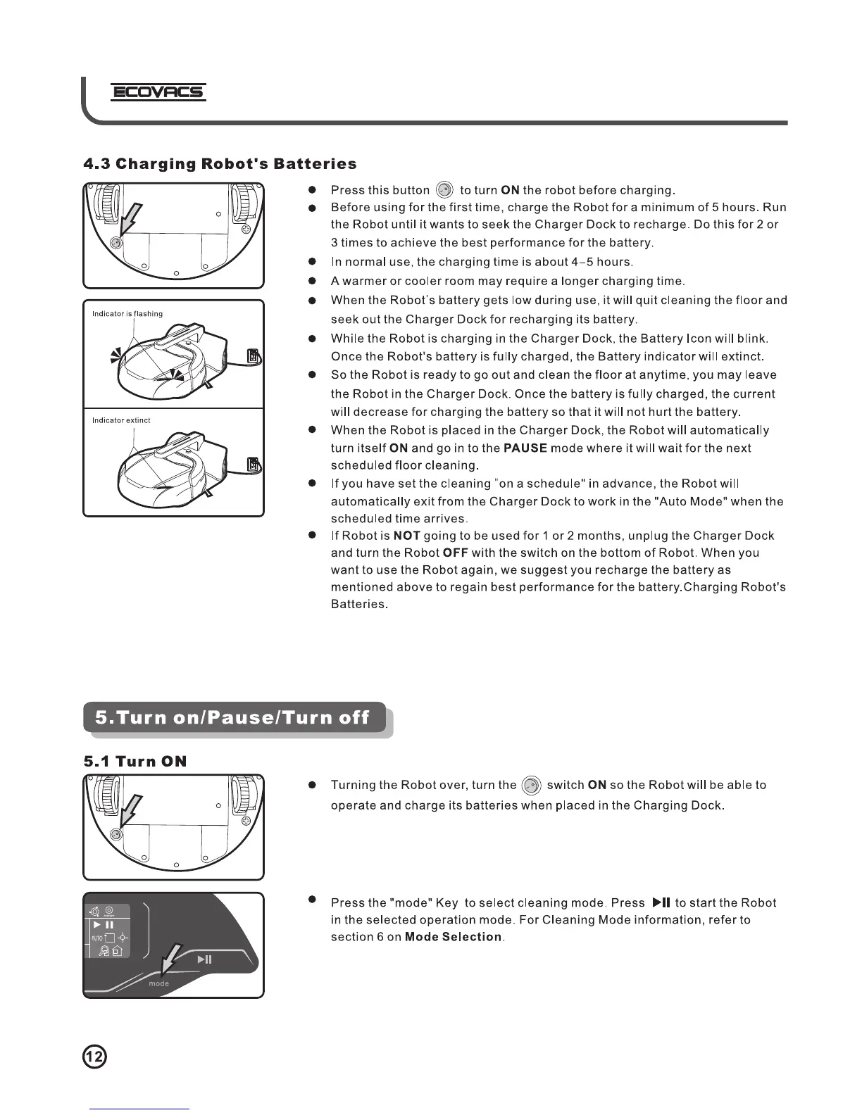 ECOVACS Deebot - Charging Robots Batteries; Turn on;Pause;Turn off