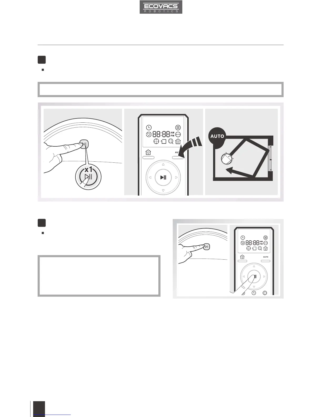 Remote Control twice. DEEBOT 8 starts to work immediately in AUTO Cleaning Mode.