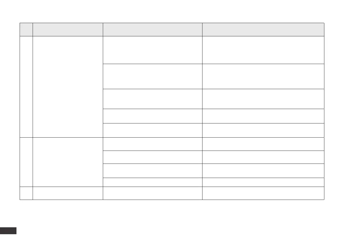 No. Malfunction Possible Causes Solutions