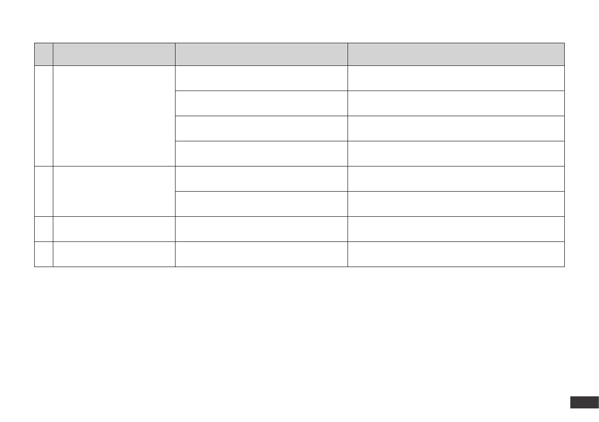 No. Malfunction Possible Causes Solutions