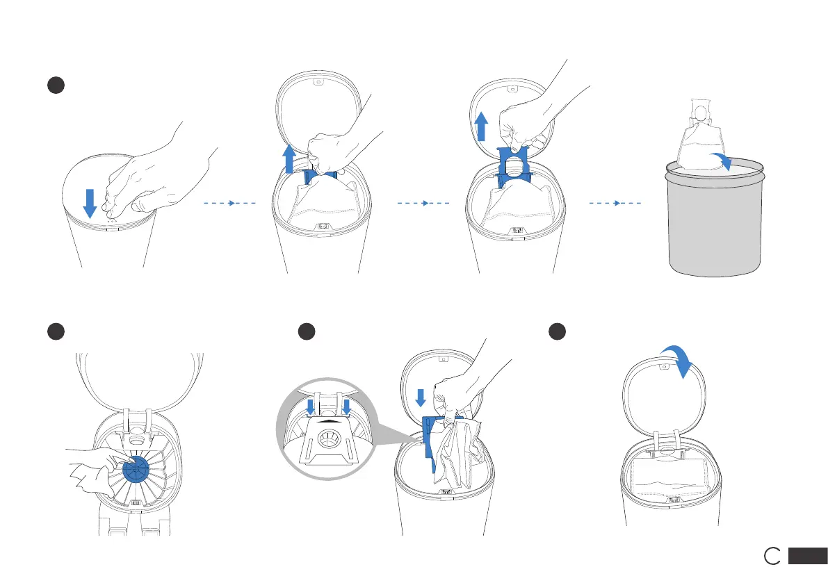 Очистите крышку вентилятора Установите мешок для сбора пыли Закройте крышку контейнера для сбора пыли