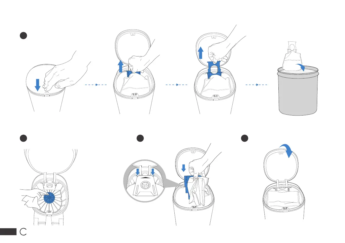 Nettoyer le couvercle du ventilateur Installer le sac à poussière Fermer le couvercle du réservoir à