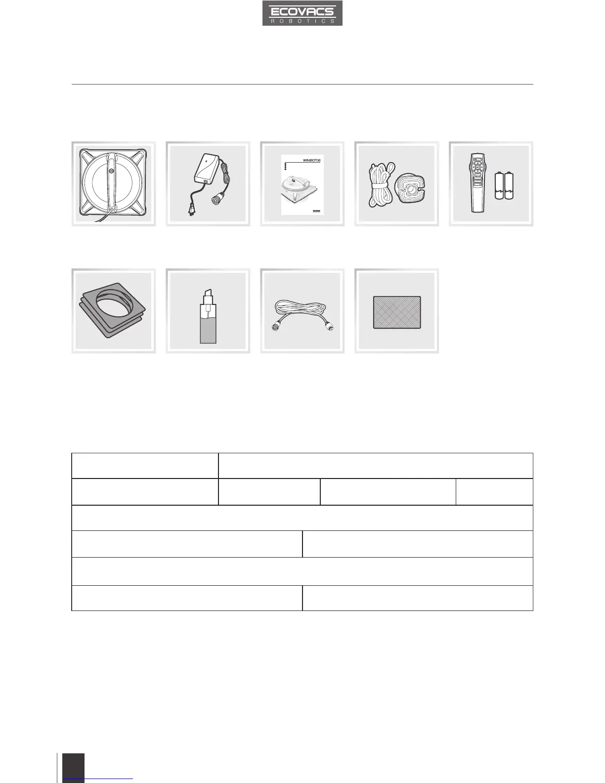 ECOVACS Winbot 9 - 2 Contenu de Lemballage Et Caractéristiques Techniques; Contenu de Lemballage; Caractéristiques