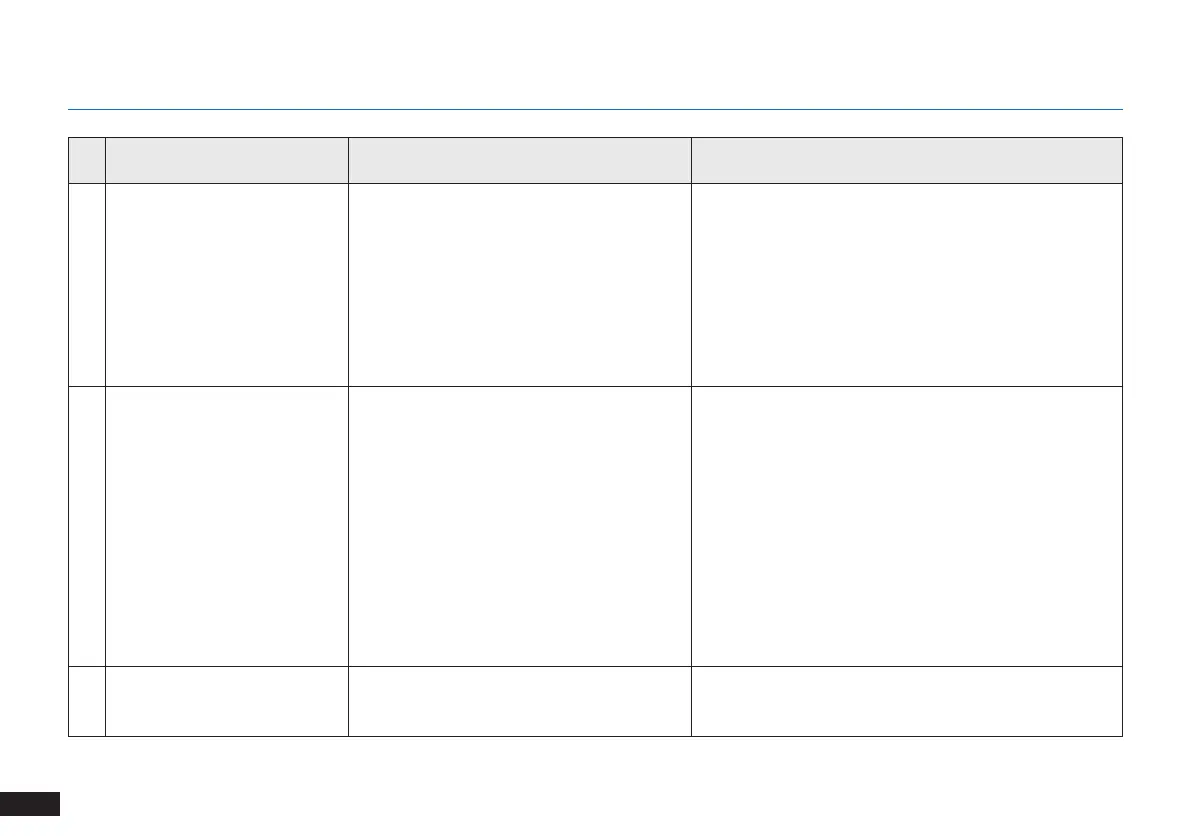 No. Malfunction Possible Causes Solutions