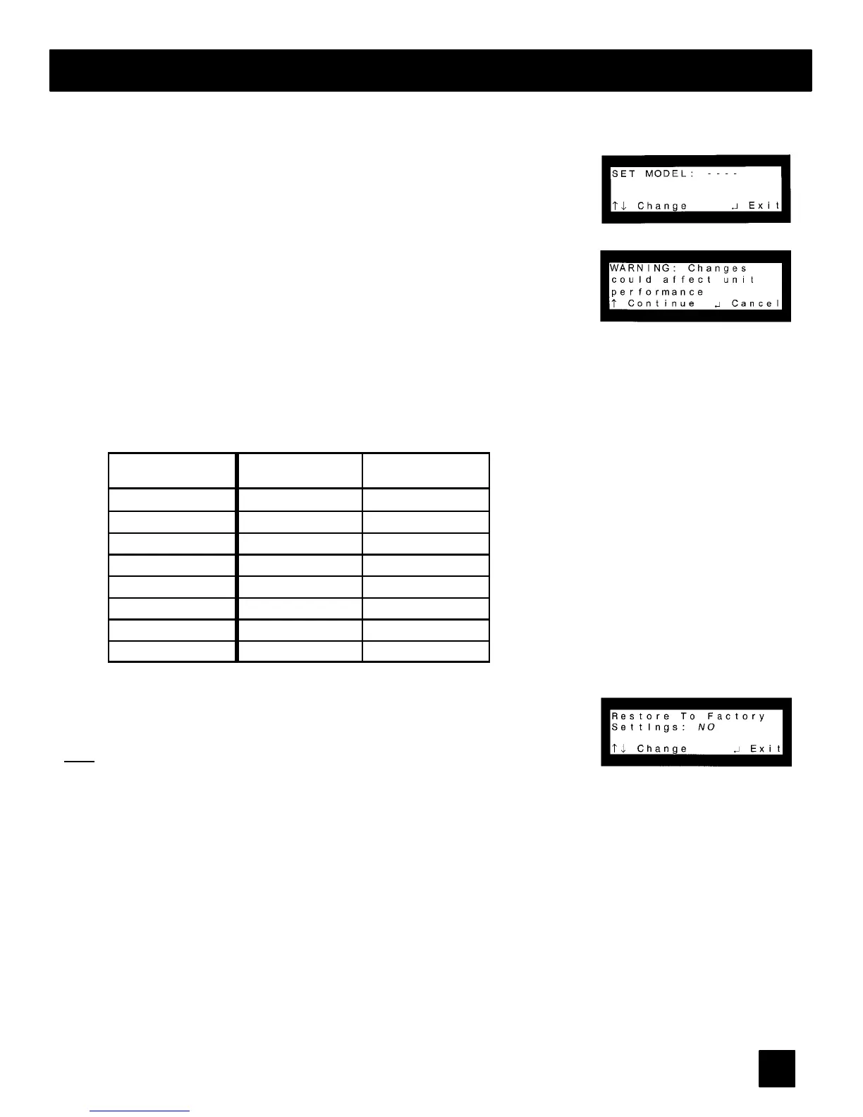 press SELECT/EXIT (↵) to exit. Warning screen will appear after changing