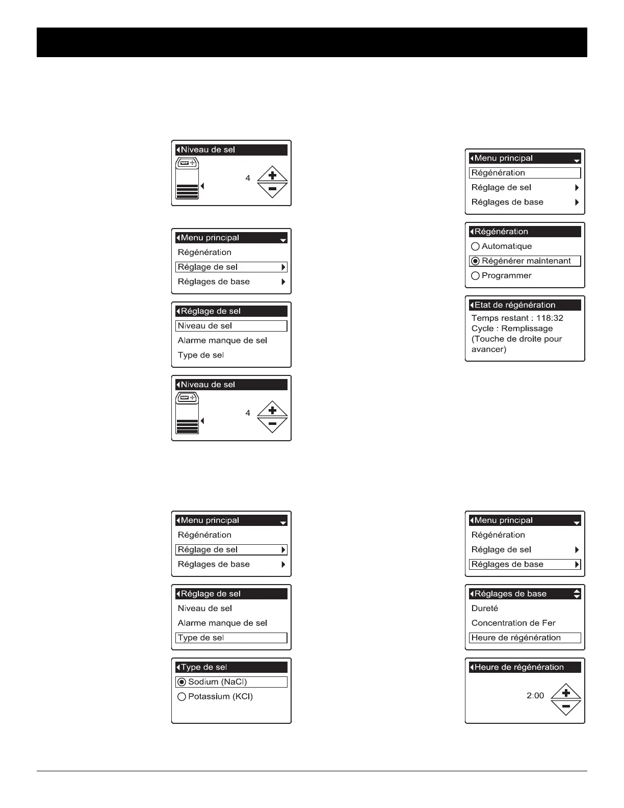 2. Aller à l’écran Réglage de sel.