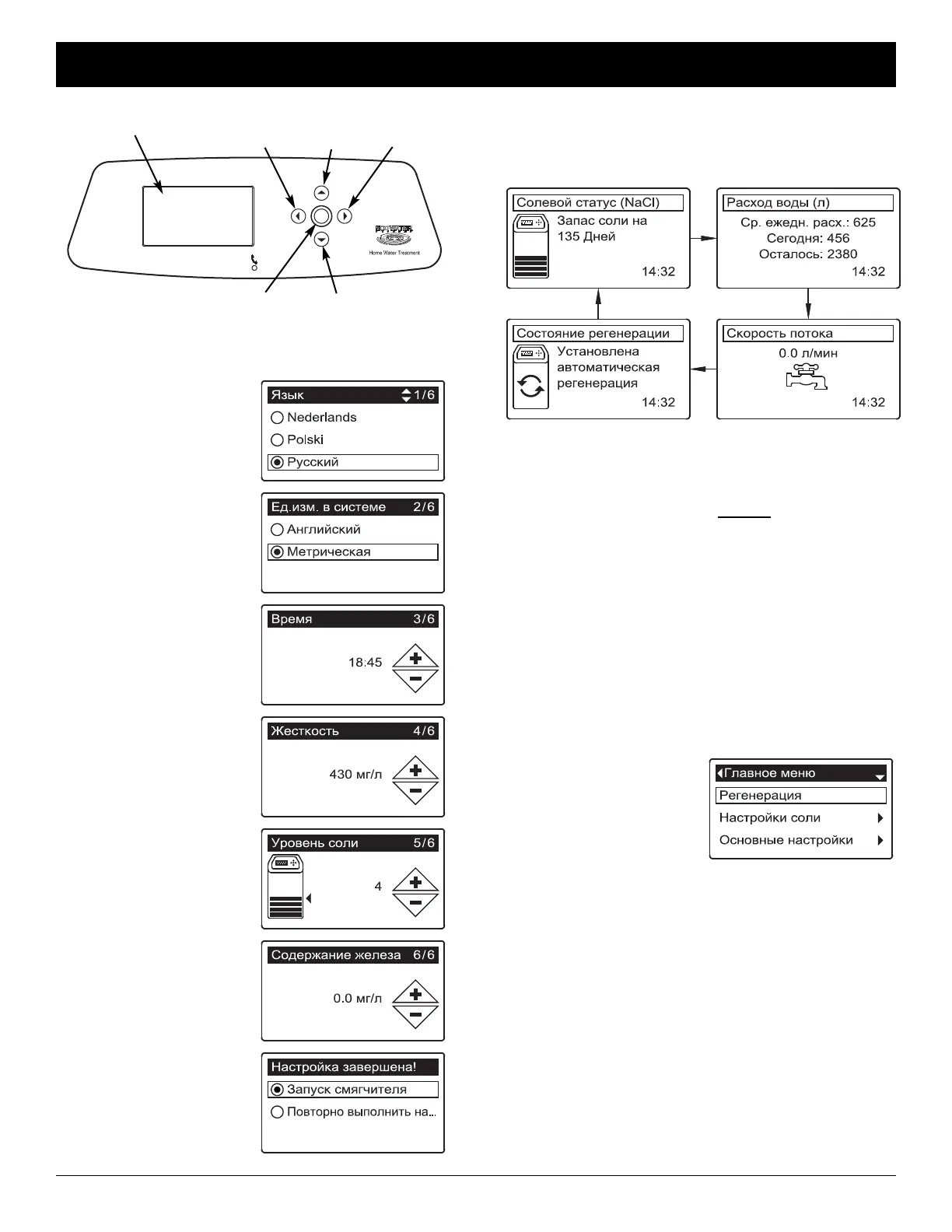 Программирование смягчителя/очистителя